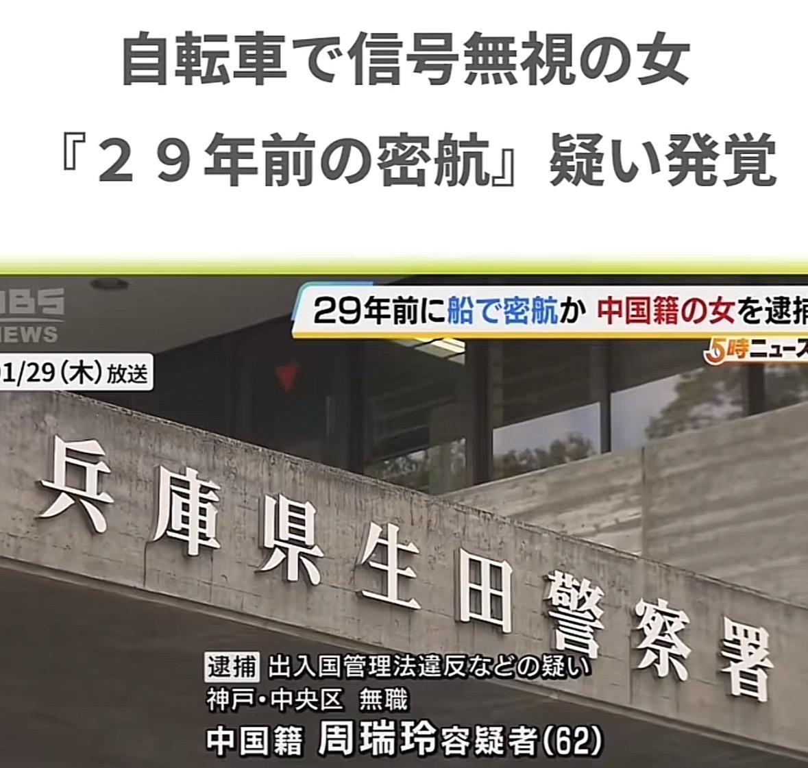 在日中国女子周瑞玲(62)因骑自行车无视信号灯被警察拦下,没想到一查其身份,发现她竟然是29年前的1997年左右坐船从东京上岸偷渡到日本的。