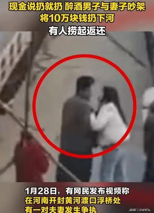 2026年1月28日河南开封黄河渡口浮桥,一醉汉与妻子争执后,竟把10万元现金扔进黄河,幸亏工作人员及时打捞,才没让这笔巨款葬身河底。 (个人观点仅供参考,无任何不良引导) 开封柳园口渡口的黄河是闻名的“悬河”,河床比地面高出10米,河水浑浊裹挟泥沙,每立方米泥沙含量最高达650公斤,东西掉进去基本难寻踪迹。当天男子喝得酩酊大醉,和妻子为家常琐事吵得面红耳赤,怒火攻心下掏出整捆现金,扬手就扔进了湍急的河水中。红彤彤的钞票落水瞬间就被泥沙包裹,顺着水流往桥墩漂去,围观路人都惊得咋舌,直言这钱怕是要打水漂。 危急时刻,浮桥工作人员反应迅速,抄起工具就冲上前。好在现金捆得紧实没散开,还恰巧卡在了桥墩缝隙里,没被急流冲走。工作人员踩着浮桥铁板,小心翼翼用长杆勾拉,忙活二十多分钟才把这湿透的巨款捞上来,晾干后直接交到了满脸怒气的妻子手中。醉汉见钱被捞回,酒意立马醒了大半,伸手想抢却被妻子死死护住,最后两人一言不发先后上车离开。 “冲动是魔鬼,醉酒更误事”,这话真是一点不假。10万元够普通家庭忙活一年,就因几句口角便随手丢弃,难怪网友调侃这是“最烧钱的吵架方式”。要知道黄河水流湍急、泥沙量大,再晚片刻,这笔钱要么被冲得无影无踪,要么被泥沙深埋,再想找回比登天还难。 成年人的世界从没有“情绪自由”的放纵,夫妻相处更该懂得克制。临近年关,酒局增多更要把握分寸,再大的矛盾也不该拿金钱撒气。这10万元能被捞回是万幸,可生活中太多冲动行为没有挽回的余地。遇事冷静三分,包容体谅彼此,才是经营生活的正道,你说是不是这个理? 图片素材来自网络,无任何不良引导。