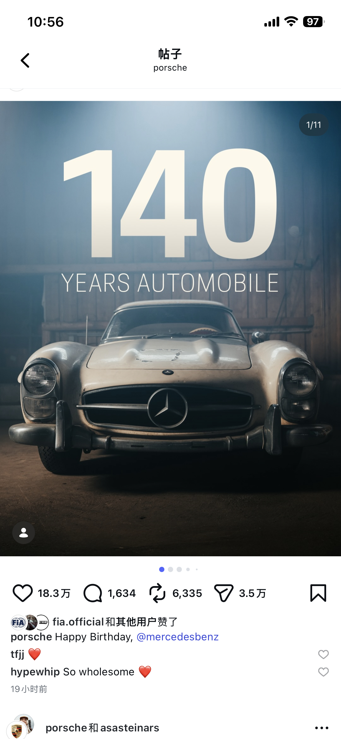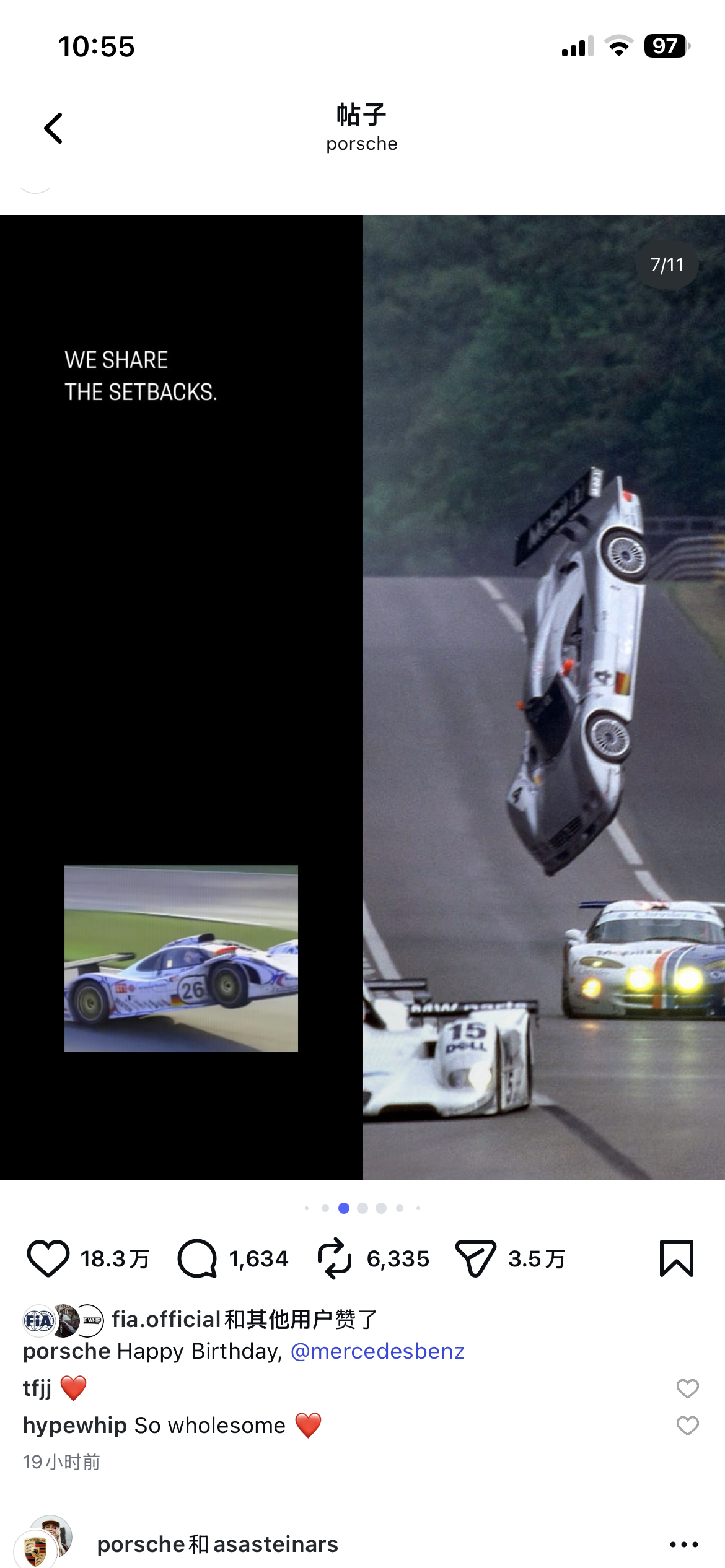保时捷在梅赛德斯的生日之际,发了一条Ins,主题是share,其中有一个page,可能是你一辈子都不可能在梅赛德斯官号看到的内容(见图3)。