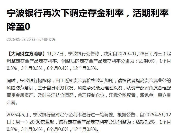 宁波银行把黄金活期利率直接砍到0%!平安、招行也跟风降到0.01%,银行集体对黄