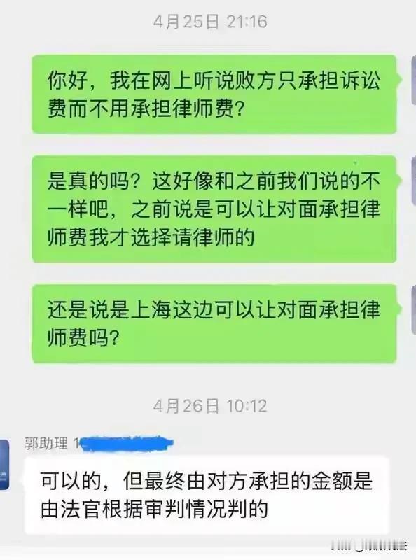 上海浦东,男子出了交通事故,为了追回700多元的交通费,他特意花了8000元请了律师。本以为这笔律师费会由被告承担,谁知却因“没有法律依据”被法院驳回了。男子懊恼不已:他们承诺“败方通赔”,这才轻信了他们,结果吃了一个哑巴亏! 捡了个芝麻丢了个西瓜,常常用于形容一个人做事只看中眼前的利益,而忽略了更大的利益。换句话说就是“因小失大”。上海浦东的倪先生,就曾干过这种事情。 倪先生有一辆新能源汽车,在2025年的2月份,倪先生正常驾驶过程中,突然被另一辆机动车给追尾了。 这可把倪先生吓了一跳,好在这起交通事故并没有造成人员伤亡,不过倪先生爱车的后保险杠却被撞的变了形。 报警之后,交警根据事故现场监控出具了责任认定书:倪先生无责,由肇事方承担全部责任。 拿到责任认定书之后,倪先生终于是松了一口气,只耐心等待车辆维修好了之后就可以了。 不过由于倪先生家里只有这一辆通勤车,如今车子在维修点进行维修,在此期间上下班的通行,倪先生只能选择乘坐网约车。 倪先生也是一个普通的上班族,一个月的工资勉强维持生活,网约车的费用给他带来很大的压力,于是便电话联系肇事方,希望对方能承担这部分的费用。 在倪先生看来,正是因为自己车辆被追尾,这才导致他产生了一笔额外的费用。既然交警都认定由肇事方承担全部的责任,那么这一笔钱也应该由肇事方承担才是。 况且倪先生的要求也不是漫天要价,且有理有据。 谁知等倪先生提出自己的想法之后,肇事方毫不犹豫的拒绝了。 对方拒绝的理由也很简单,他的车辆购买了相关的保险,他拒绝承担保险之外的任何费用。 对方如此强硬的态度,让倪先生心里感到一阵窝火。 这笔费用是实打实产生的,不能因为别人的过错,不仅让他的爱车受到损害,还让他蒙受其他的损失。 思来想去,倪先生决定走法律途径。既然对方不愿意私下解决,那就法庭上见。 不过倪先生过了大半辈子,还是头一次起诉别人,这方面的简直就是倪先生的知识盲区。 倪先生决定找专业人员帮忙,为了避免不必要的麻烦,倪先生还特意在当地找了一家规模挺大的律所。 律所工作人员听了倪先生的诉求之后,也建议倪先生委托律师代理案件,不过要收取8000元的律师费。 价格一说出来,吓得倪先生连连摆手。 他粗略的计算了一下,这段时间产生的交通费也就700多块钱,为了这点钱要花8000块,他这不是妥妥的冤大头嘛? 见倪先生误会了,律所工作人员连忙叫住倪先生,让他先别着急,并告诉倪先生这笔钱完全不用他出。 因为在本次交通事故中,倪先生是无责任方,依据“败方通赔”的原则,倪先生有权要求肇事方承担律师费用。 倪先生听完这才松了一口气,既然这笔钱能让对方出,那就没什么好担心的了,于是就跟律所签订了相关协议,并支付了8000元的律师费。 等到快开庭的时候,倪先生突然感到有些不安,于是再次联系律所工作人员,询问这笔钱能不能讨回来。 工作人员明确告诉倪先生:通常情况下没有问题,不够具体的金额需要由法官决定。 工作人员如此明确的回复,让倪先生心里的石头终于落了地。谁知等法院判决书下来之后,结果让倪先生彻底傻了眼。 法院虽然判决被告承担交通费,不过却驳回了倪先生主张的律师费。 倪先生直接懵了,不信邪的他连忙又咨询了另一家律所,他这才知道,诸如他这种简单机动车交通事故责任纠纷,法院通常不支持原告主张被告承担律师费的诉请。 这种法律常识,倪先生作为普通人不明白是情有可原的,可律所作为专业机构,怎么可能不知道呢? 为什么在此期间,律所一直都在暗示倪先生能追回律师费呢? 倪先生与律所多次沟通,希望律所能退回一部分费用,不过对方并没有同意。 有人说,倪先生之所以会选择委托律师代理案件,就是因为轻信了这笔钱能够追回来,没想到却被专业的人用不专业的话术给骗了。 对此你怎么认为呢?关注@康康说法 多学法律少吃亏。