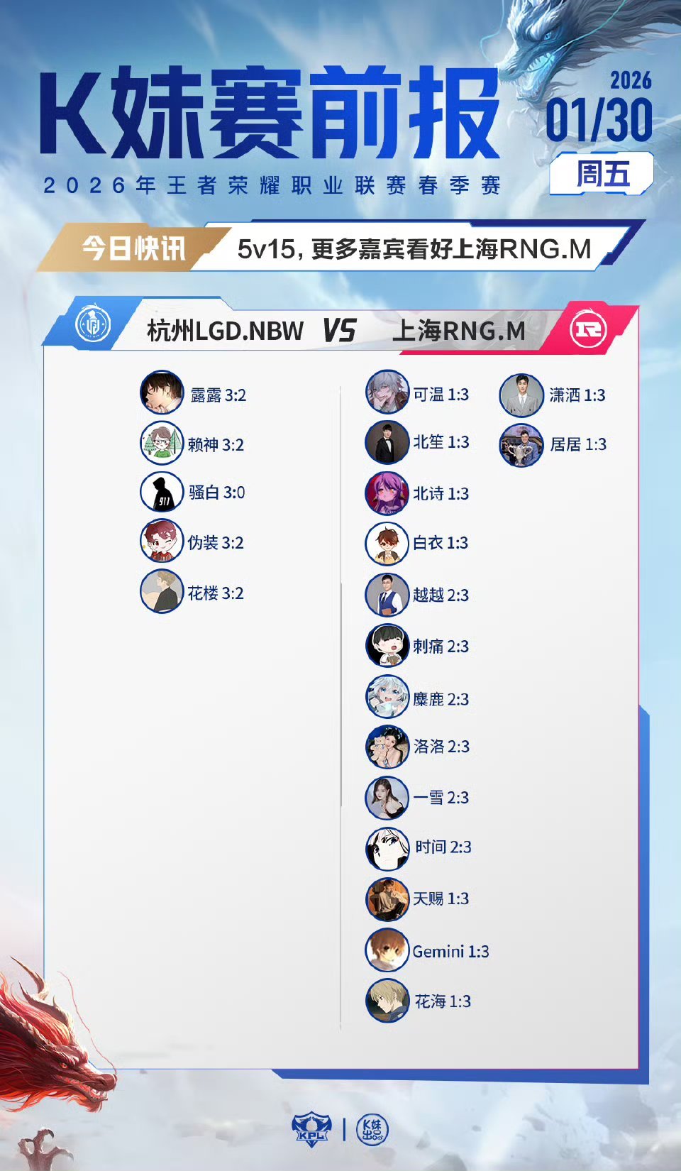 5v15,更多嘉宾看好上海RNG.M;18v2,仅刺痛潇洒看好桐乡情久;18v2,仅伪装天赐看好长沙TES.A。
