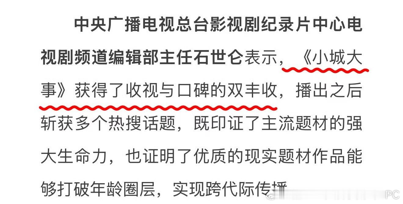 赵丽颖、黄晓明《小城大事》研讨会在北京成功举行。 央视总台认证《小城大事》获得了收视与口碑的双丰收,恭喜《小城大事》获得了全方位的认可🎉小城大事收视口碑双丰收