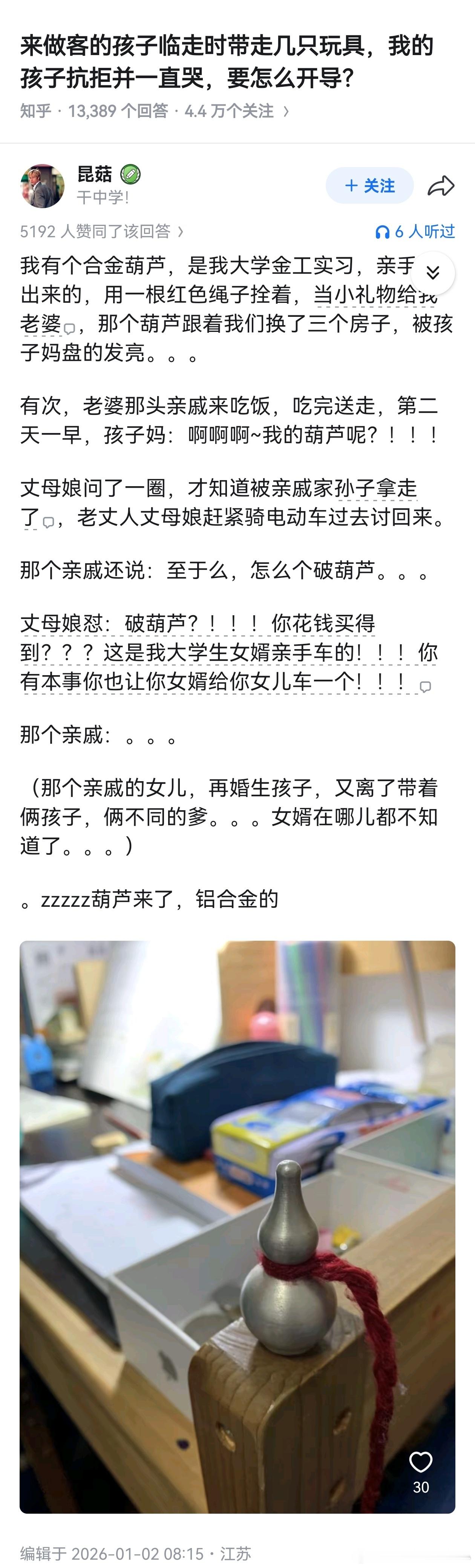 对应的还有一个“如果去别人家做客,孩子非要某个玩具怎么办”的问题,一个朋友回答说: