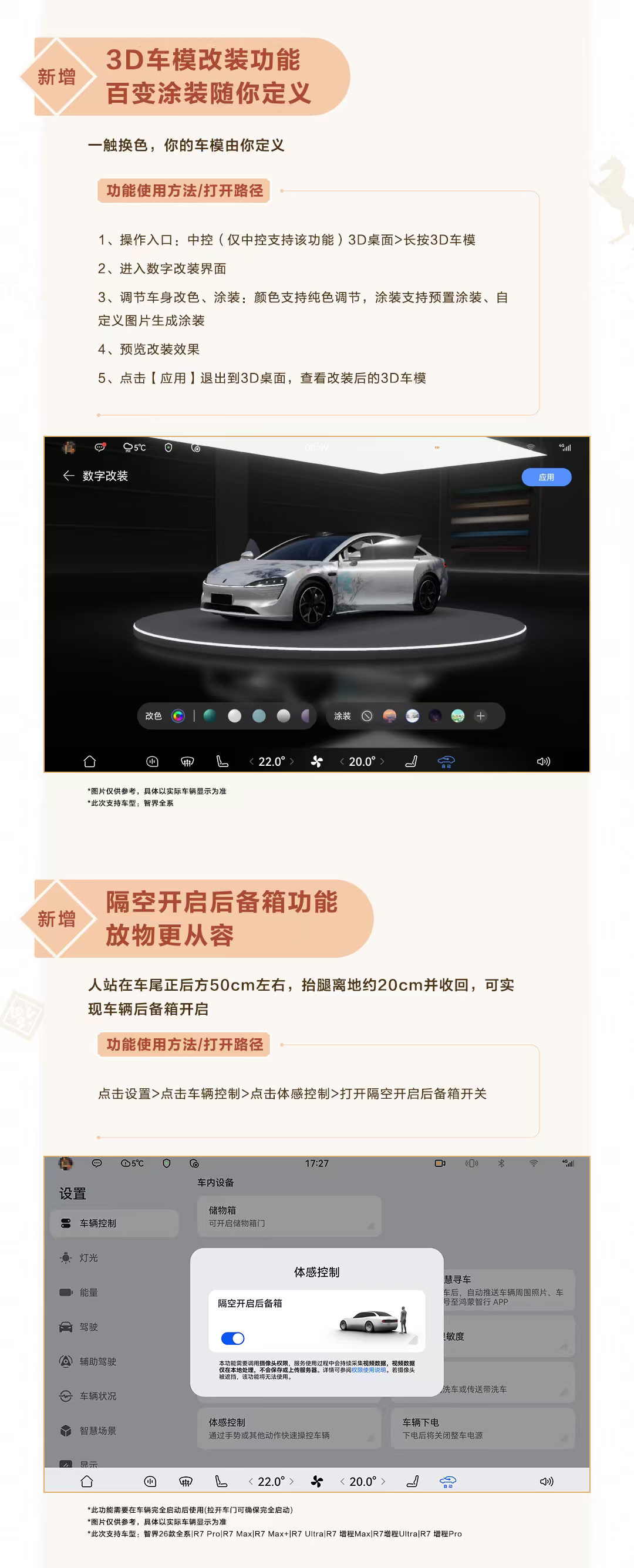 智界汽车全系OTA推送升级 近日,智界R7智界新S7 全系迎来新年OTA重磅升级,覆盖智能、智趣、舒适、安全等四大维度。智界车主抓紧升级吧。