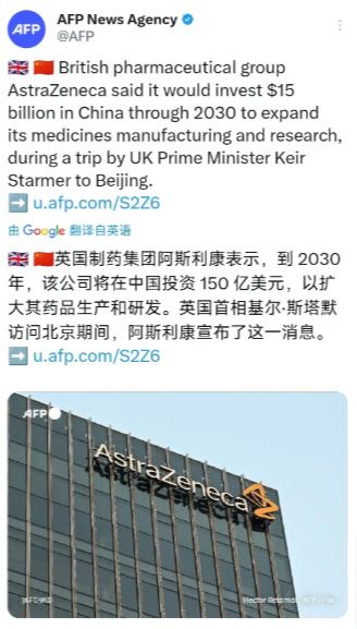 阿斯利康宣布对华投资超千亿元人民币! 法新社1月29日晚报道,英国制药集团阿斯利康表示,到2030 年,该公司将在中国投资150亿美元,以扩大其药品生产和研发。英国首相基尔·斯塔默访问北京期间,阿斯利康宣布了这一消息。 当聚光灯打在英国首相斯塔默访华的行程上时,真正让大西洋彼岸感到脊背发凉的,其实并不是外交辞令,而是一串在幕后敲定的、沉甸甸的数字。 1月29日晚,就在北京的寒暄与握手之间,英国医药界的“无冕之王”阿斯利康突然把一张价值150亿美元,约合人民币1000亿元的超级支票拍在了桌面上。 这不是什么意向书,这是一个一直要把钱烧到2030年的长期赌注,可以想象一下那个画面:一边是某些西方政客还在喋喋不休地喊着“脱钩断链”,另一边他们最核心的盟友、最顶级的跨国巨头,却在用真金白银狠狠地押注“中国链”。 这恐怕比任何外交辞令都更能让那位崇尚“美国优先”的特朗普感到恼火。 资本是最诚实的,它从来不听从意识形态的指挥棒,它只流向效率最高、回报最确定的地方,阿斯利康的这笔千亿投资,绝不是为了给斯塔默的访华之旅“随份子”,如果翻翻账本就会发现,这其实是一场蓄谋已久的深度捆绑。 早在去年3月,这家英国巨头就已经砸下25亿美元,要在北京建全球第六大研发中心,自2023年以来,他们在制造端的投入也早已超过18亿美元。 这次追加到150亿美元,只能说明一件事:他们尝到甜头了,而且那个甜头大到让他们不敢停手。 阿斯利康全球CEO苏博科把话说得很透,他把这定义为“在华发展新篇章”,这话背后的潜台词其实很生猛:现在的跨国药企,如果不挂在中国的产业链上,你可能就造不出最好的药。 以前大家觉得中国是“大卖场”,把药卖给中国人赚钱。但阿斯利康这次盯上的,是中国的“大脑”。 这笔钱将流向哪里?细胞治疗、放射偶联药物,这些都是目前全球抗癌药研发皇冠上的明珠。 阿斯利康甚至要做第一家在中国拥有“端到端”细胞治疗能力的跨国药企,什么叫“端到端”?就是从研发到生产,全流程都在中国搞定。 他们看中的是中国的科研优势和那个无可替代的供应链,这就形成了一个极其讽刺的闭环:西方政客想封锁技术,西方企业却在拼命想把中国的创新技术带给全球患者。 这就是现实版的“嘴上说不要,身体却很诚实”,斯塔默这次访华,显然是带着务实主义的计算器来的,这也给那些还在观望的欧洲国家打了个样:在这个动荡的国际局势下,谁是能帮你搞经济的“真朋友”,谁是只会给你下命令的霸权者,其实大家心里都跟明镜似的。 这150亿美元的投资,就像一枚回旋镖,精准地击碎了所谓“去风险”的虚伪叙事,毕竟当一家全球顶级企业决定把未来十年的身家性命都押在中国时,它传递出的信号只有一个:世界的未来在哪里,钱就在哪里。