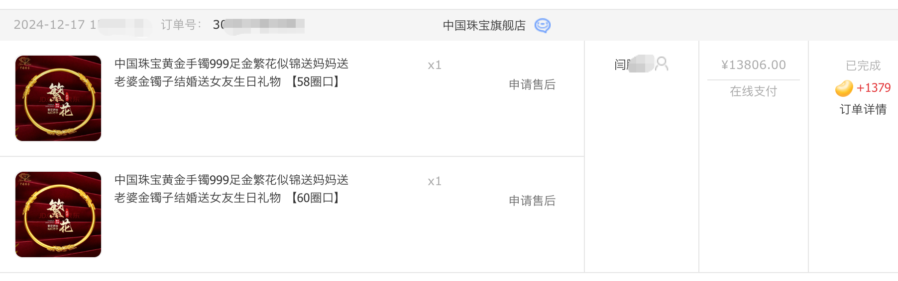 今日金价24年年底给老人买了俩镯子才1.3万今天看,妈呀,一只镯子都快1.4万