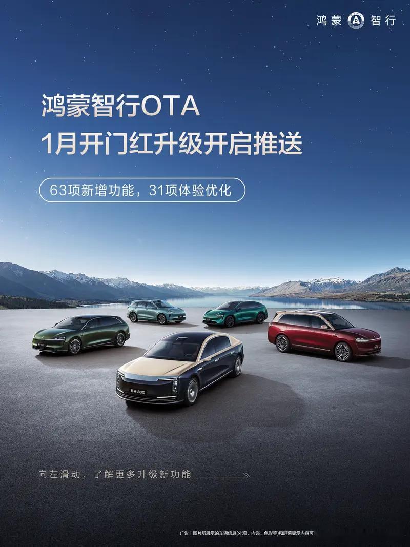 鸿蒙智行2026年首次OTA推送 1月30日,鸿蒙智行官方宣布开启2026年首次OTA推送。据介绍,此次OTA升级新增63项功能和31项体验优化。具体来看,WEWA架构迎来强化,驾驶风格更加老练,通行更安心。小艺语音理解大模型迎来全面增强,对话语速更合拍、语气更自然。