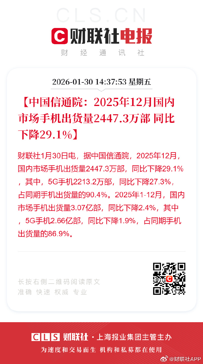 12月国内市场手机出货量2447.3万部 同比下降29.1%卷吧,卷到各行各业都没有钱换手机了还天天以不赚钱为荣