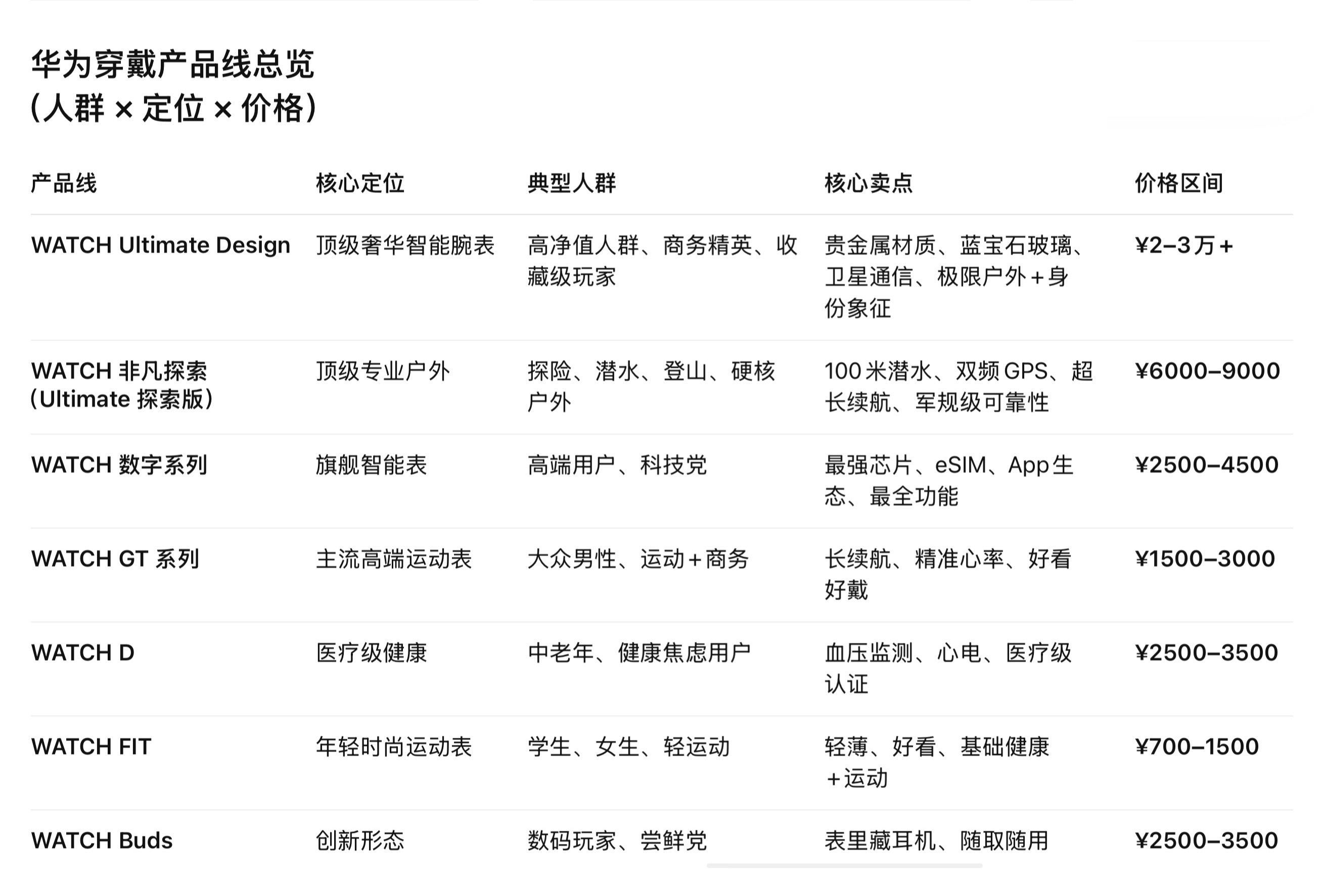 产品线丰富,每块表都有对应人群受众,想要了解的朋友,看下图二。不过,有一说一,近期感恩回馈季,华为WATCH GT6 Pro 这个价格是真香啊