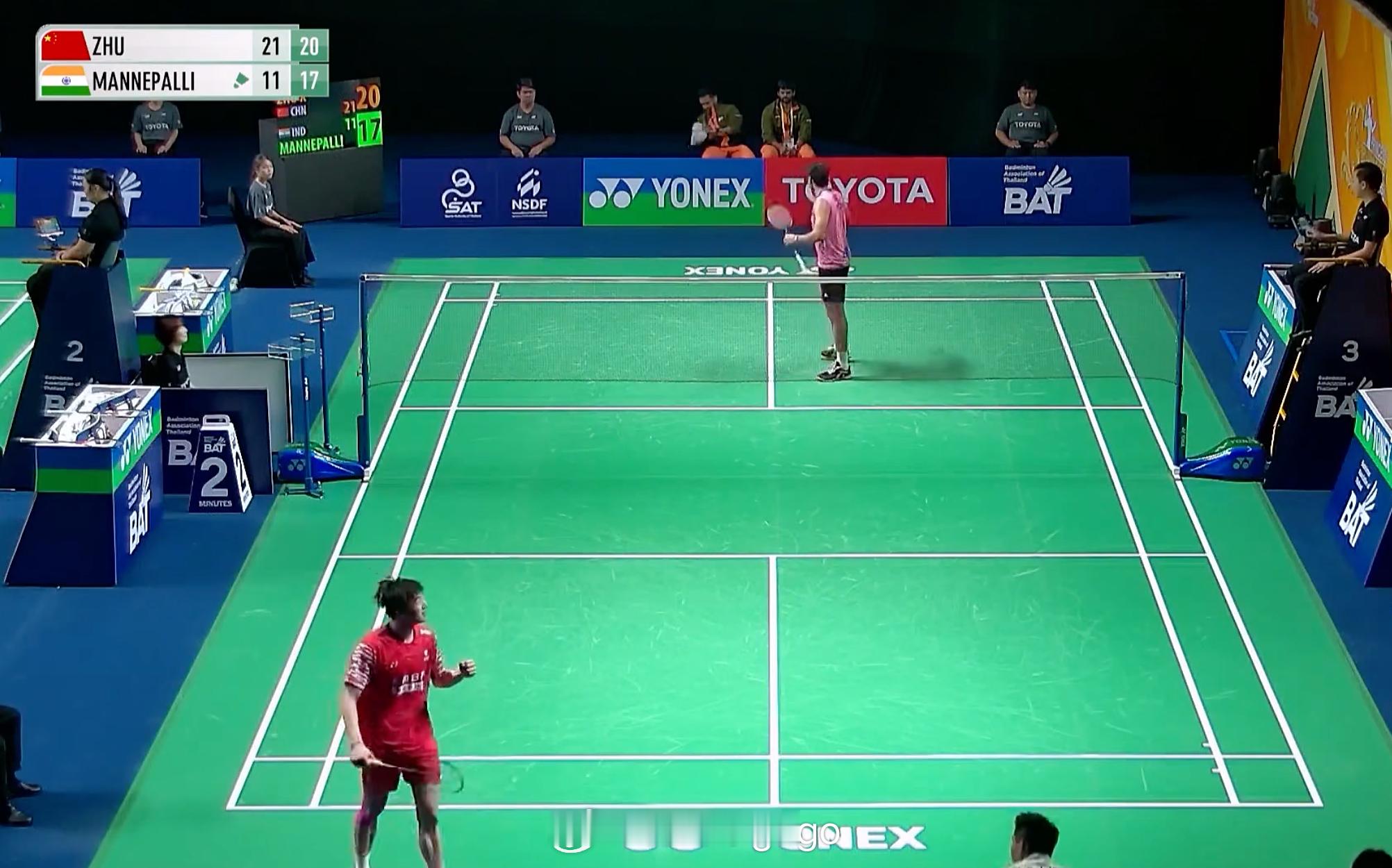 🇨🇳朱轩辰 21-11 21-17 曼内帕里🇮🇳