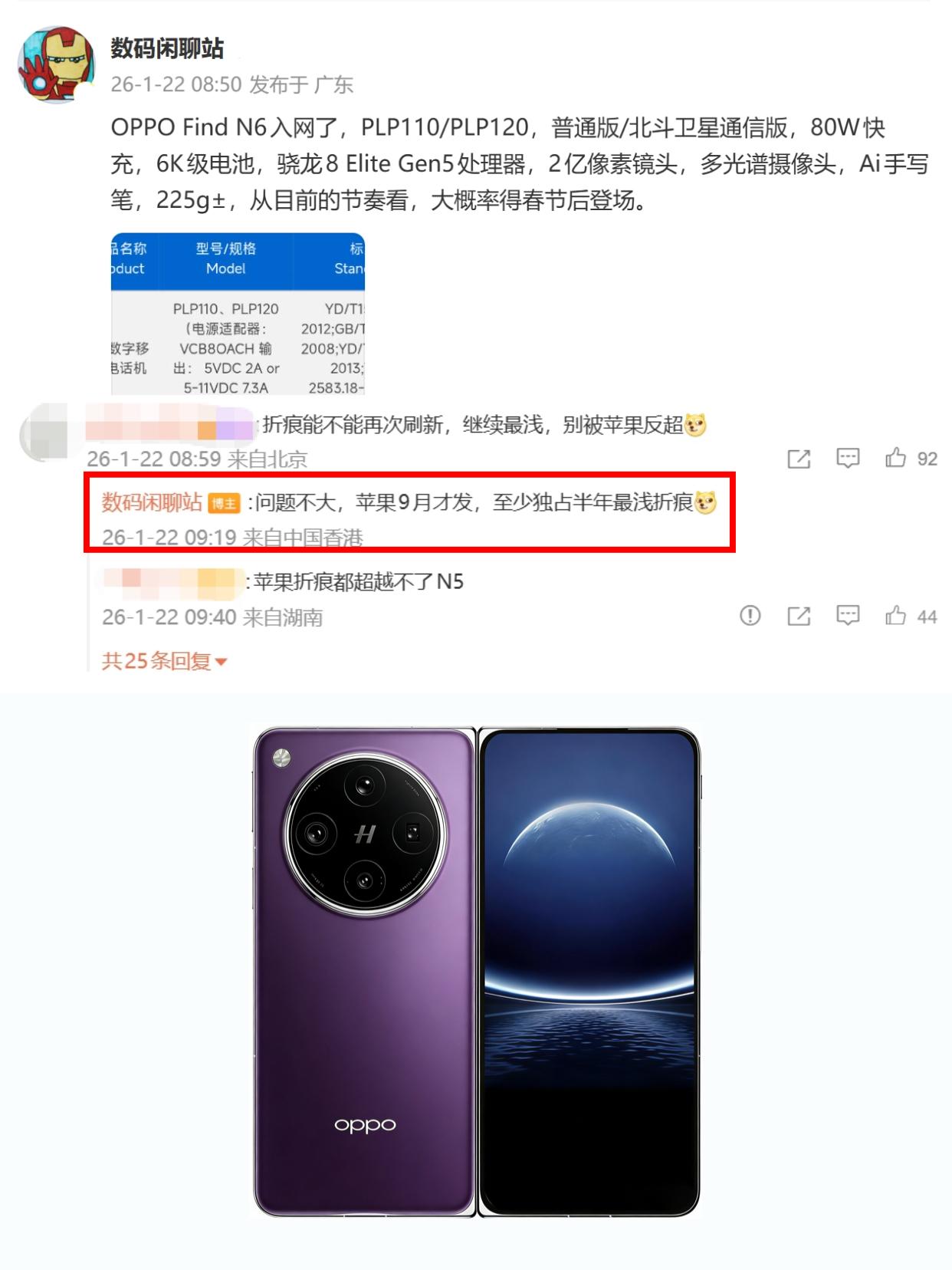 网友:苹果没招了?折叠屏供应链都学国产了 2026年科技圈,大家伙都等着看苹果给折叠屏市场一点小震撼,结果万万没想到,iPhone Fold居然是学国产的吗? 之前其实就有传出,苹果为了做折叠屏,专门买了OPPO Find N5回去拆机研究,现在新爆料来了,苹果不止研究,还要直接照搬,接下来的iPhone Fold用的铰链、中框、边框等关键部件估计会跟新款OPPO Find N6高度重合,本以为苹果是偷师OPPO,没想到更是照葫芦画瓢? 有一说一,OPPO在折叠屏领域的技术确实很强,卷了好几代,折痕控制、铰链技术这些都有口皆碑,据说春节后要发布的OPPO Find N6还会首发无折痕内屏,而且独占期至少半年起?那苹果学OPPO感觉还挺合理的哦。 那这样看,Find N6岂不是更值得期待?毕竟最近内存涨价涨的厉害,iPhone Fold听说至少都得1.5w起了,高的可能要到2W,而且还得等到9月份才来,那不如看春节后的Find N6,价格更香,还能更早用上无折痕,大家觉得呢? 折叠屏 iPhoneFold 苹果折叠屏 OPPO Find N6