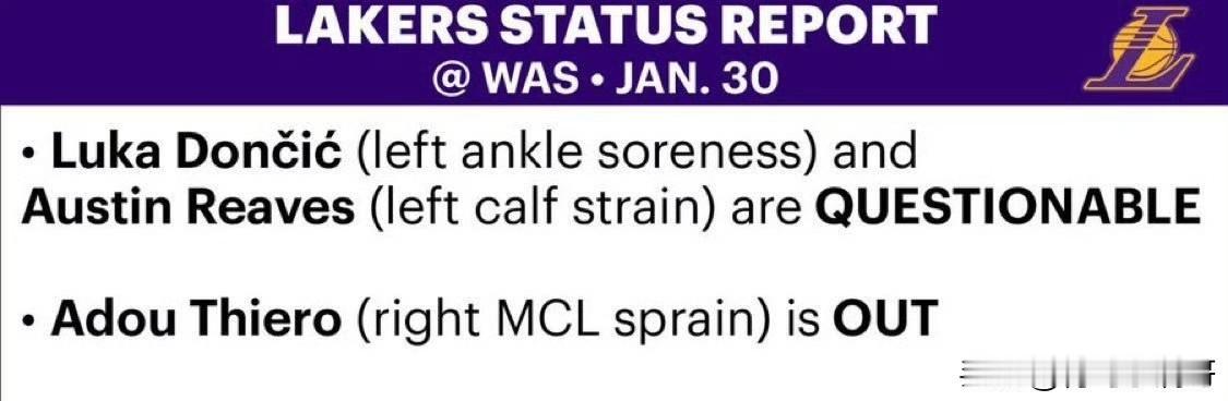 湖人vs奇才比赛预告!!!湖人对阵奇才比赛预测,湖人被看好! 北京时间1月31日上午八点,湖人将做客华盛顿挑战奇才队,双方的实力差距还是蛮大的,奇才东部倒数第一,湖人至少还在西部季后赛区域,不过任何一支球队都不能轻视,一起来看下比赛预告! 湖人伤病情况: 东契奇和里夫斯都是出战成疑,根据之前报道,里夫斯预计将在这场比赛复出。 奇才的伤病情况要明天早上才会更新。 目前,从ESPN给出的比赛预测结果来看,湖人以超过七成的胜率被非常看好,其实双方的防守效率相差不大,主要看进攻局面谁能率先打开。 明天是周末,但是比赛开始的比较早,大家记得准时收看比赛。湖人 nba 湖人 湖人赛程 湖人阵容名单