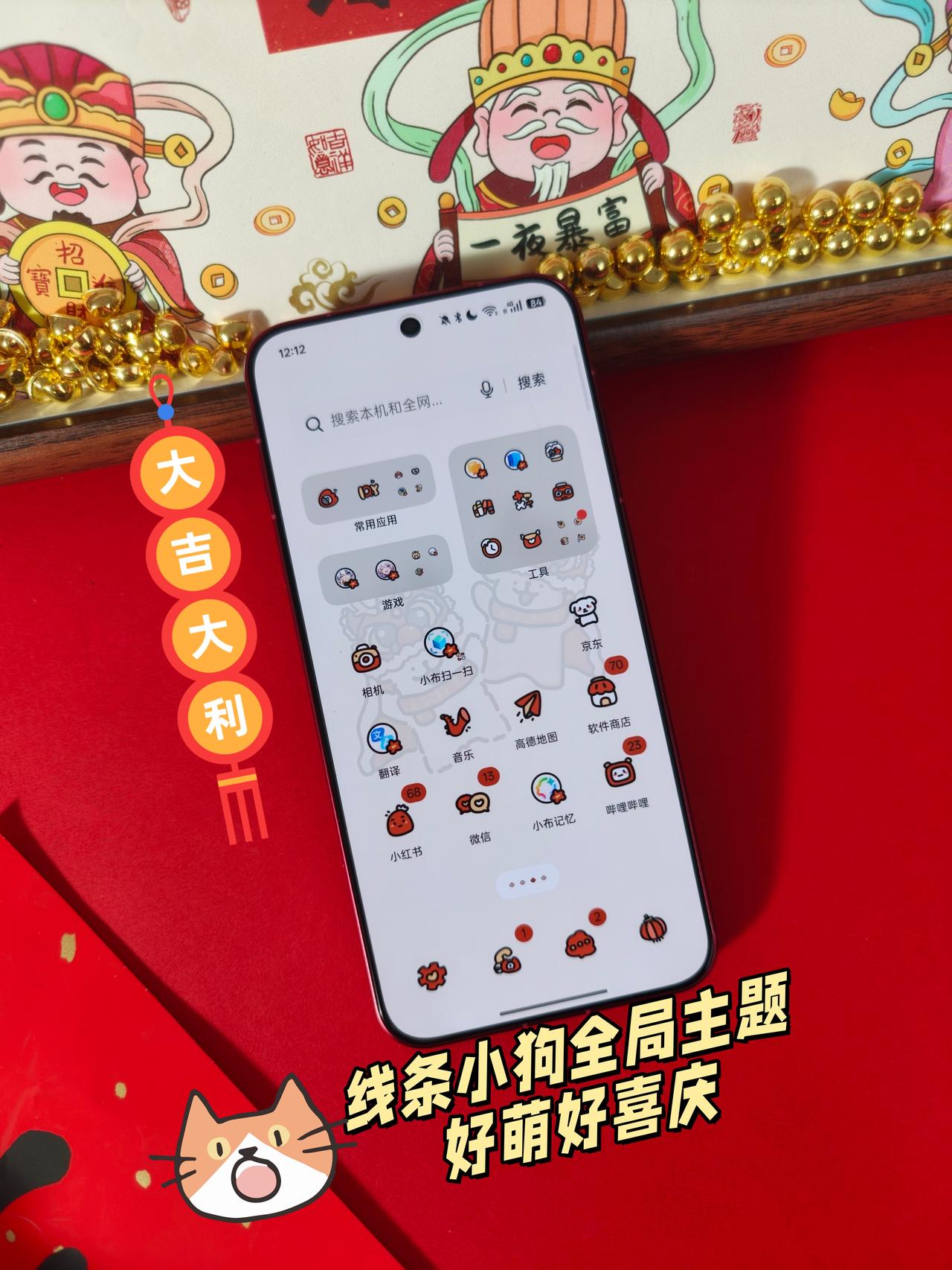 小白小金毛包饺子好萌丨新手机年味Max😭 快看看我的新换的🐶线条小狗新年壁