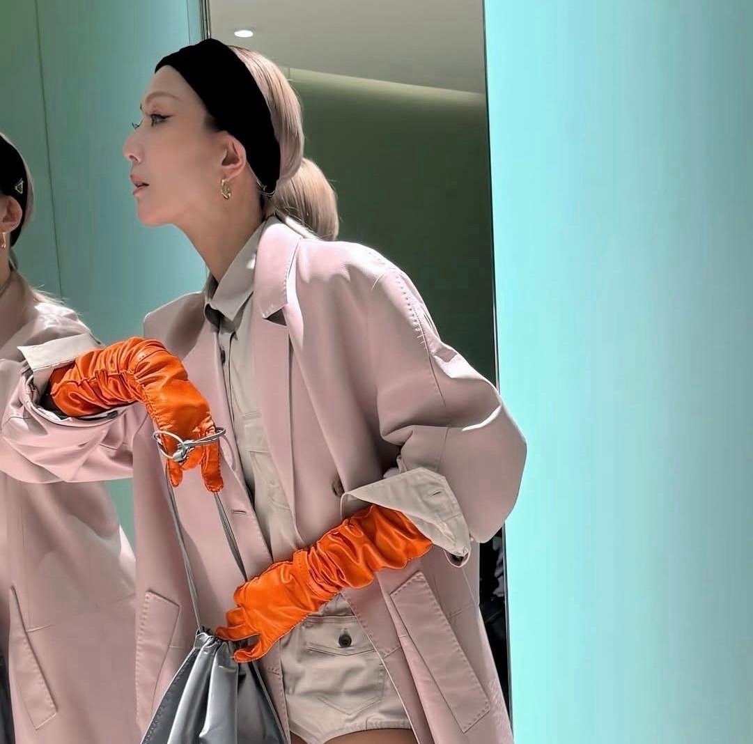 以为郑秀文大衣里会配半身裙啥的,她竟然穿了条像尿不湿一样的短裤…