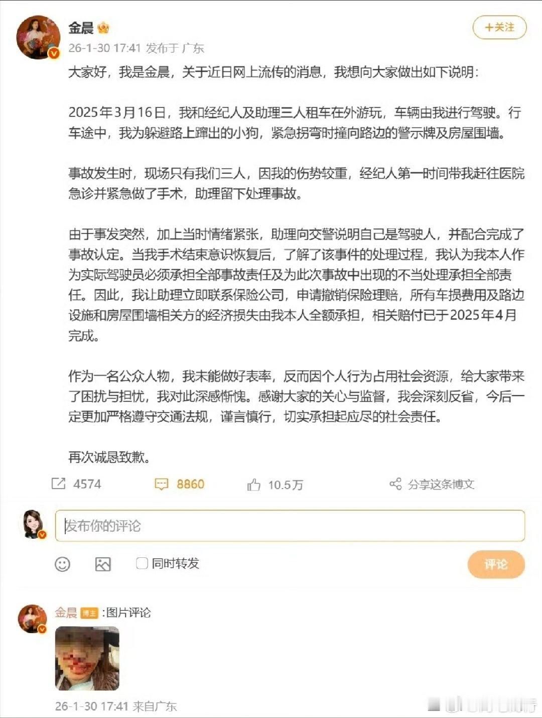 官方通告,本人回应!警方通报金晨事件金晨道歉