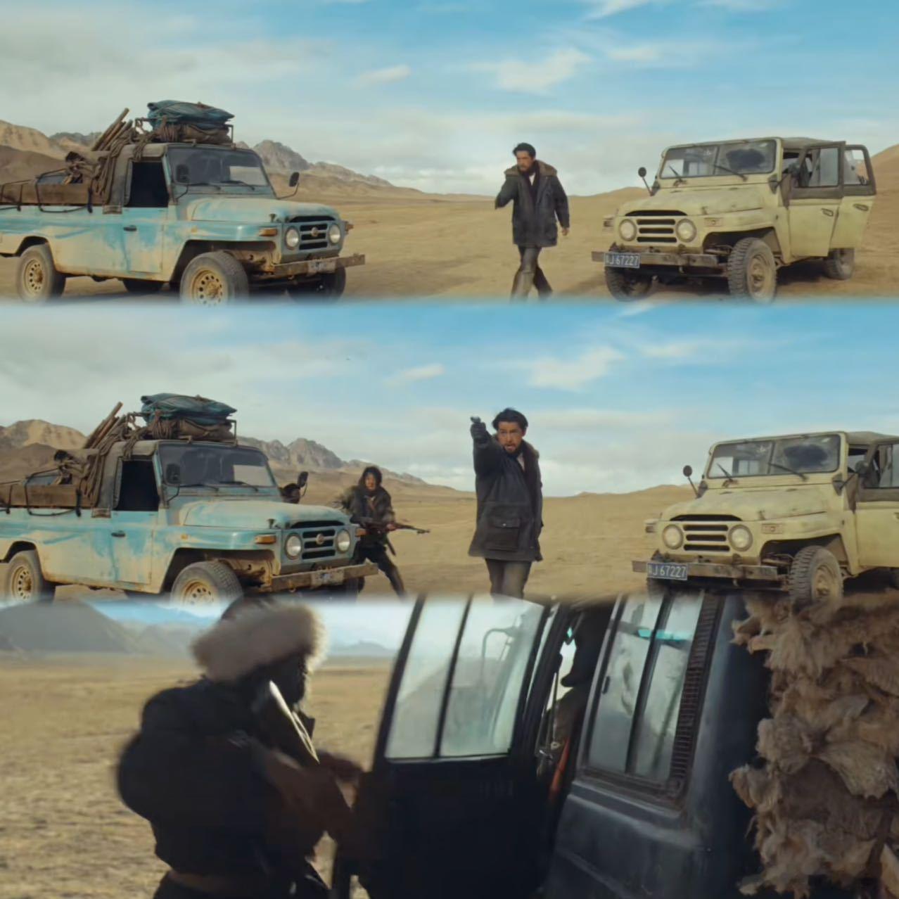 生命树2颗子弹爆掉盗猎人手指《生命树》这段追猎戏,多杰在沙暴中如战神降临,两颗子弹带着怒火,瞬间爆掉盗猎人手指,太震撼!