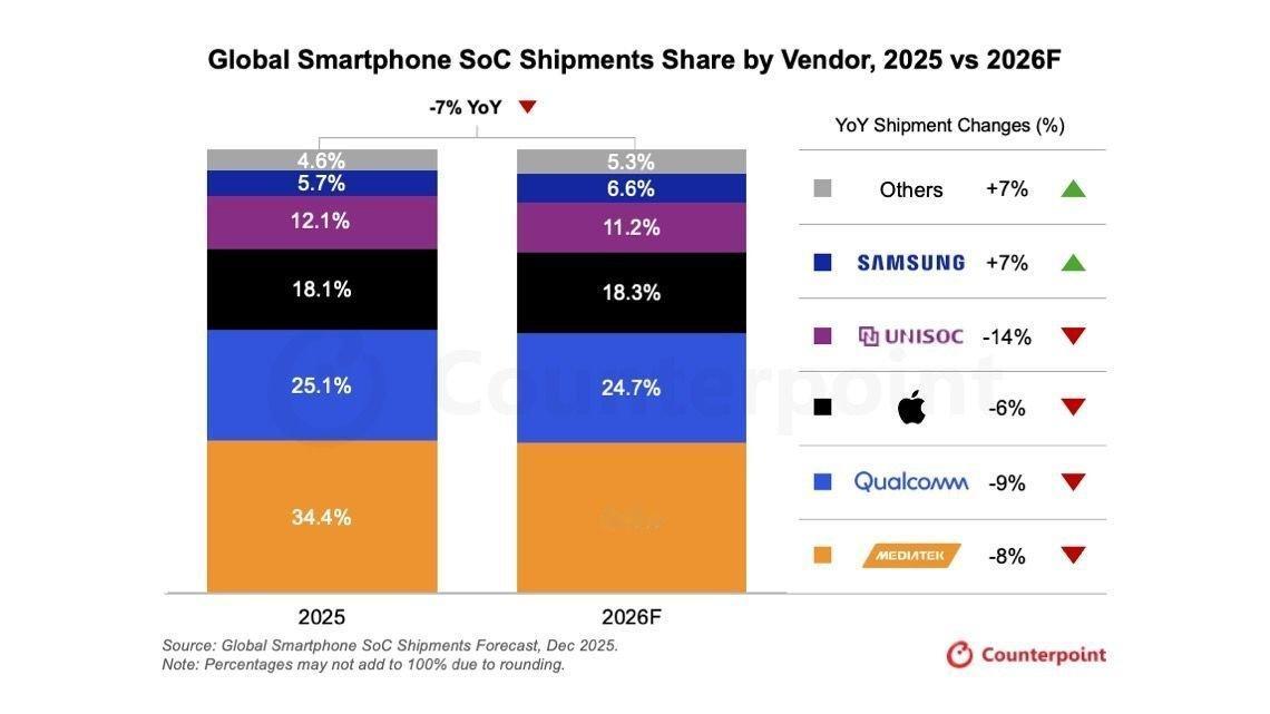Counterpoint Research2025年全球手机芯片市场份额报告: