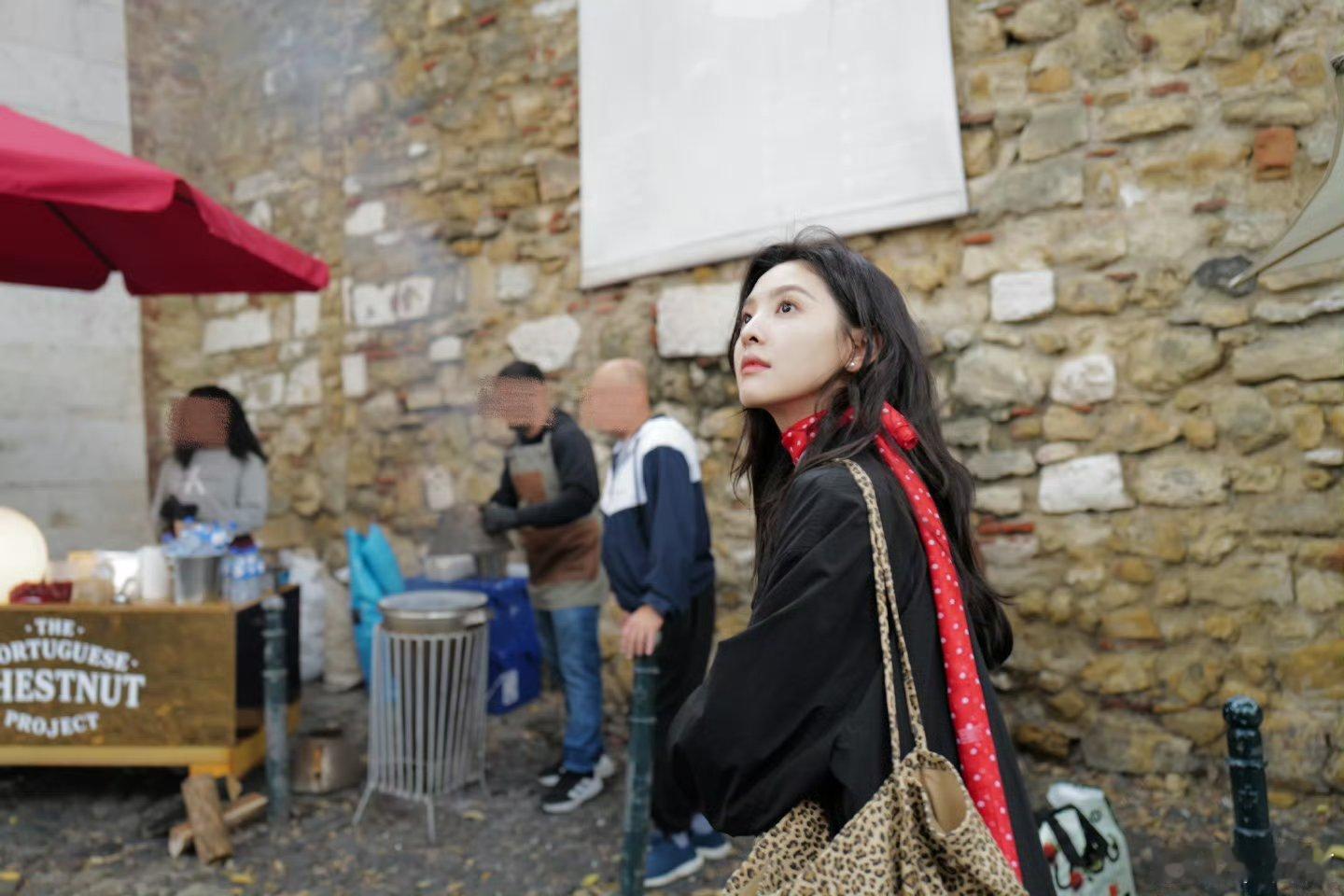张天爱跟素人合影,胯真的好宽,大宅院似的