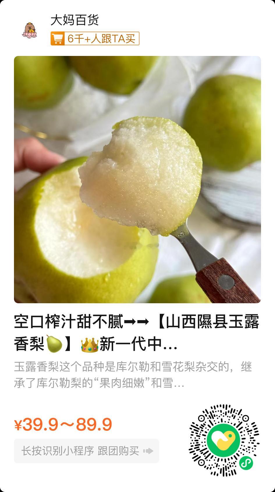 这次价格也还行,59.9/6斤中果,89.9/9斤大果,真隰县,做到10块钱一斤不容易,如果自己吃,可以选💰36.9/6颗花皮瑕疵果,削皮吃,果肉一样细嫩,一样甜,就是果皮不好看。