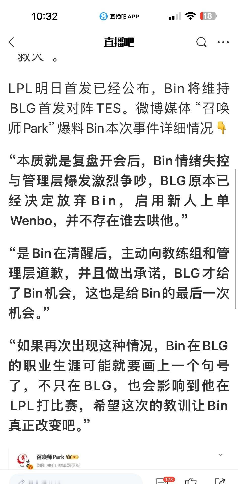 BLG这波操作有点抓马啊!听说原本都打算放弃Bin了,就因为复盘时跟管理层吵了起来。还好Bin后来冷静道歉,才保住了首发,但二队新人也被调上来了,这下竞争压力拉满。