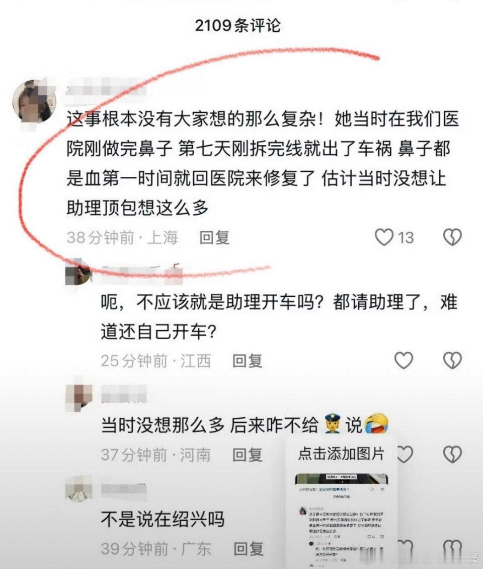 驾驶员走了,就助理自己在,估计想说是自己,把事情弄简单点。