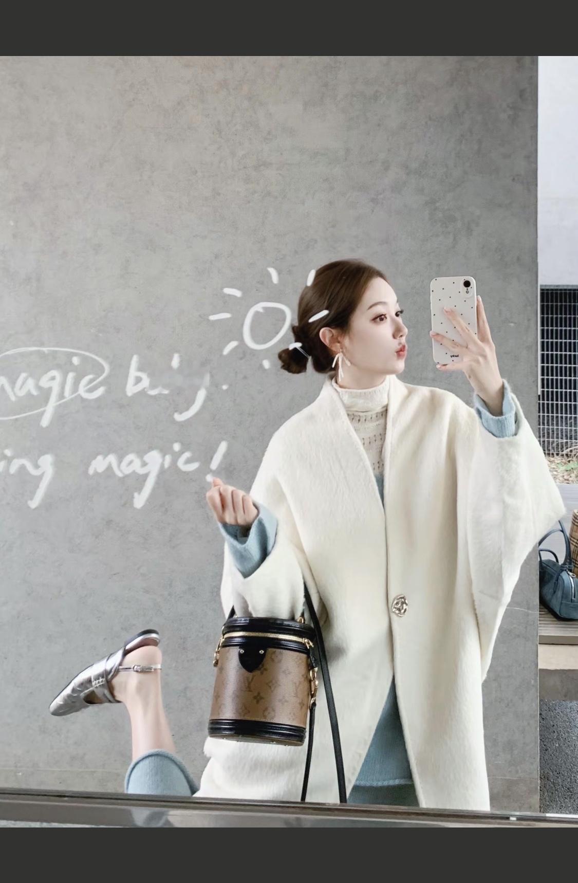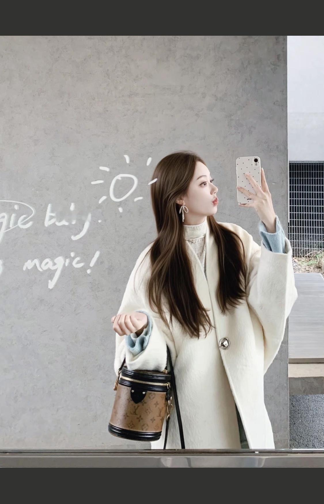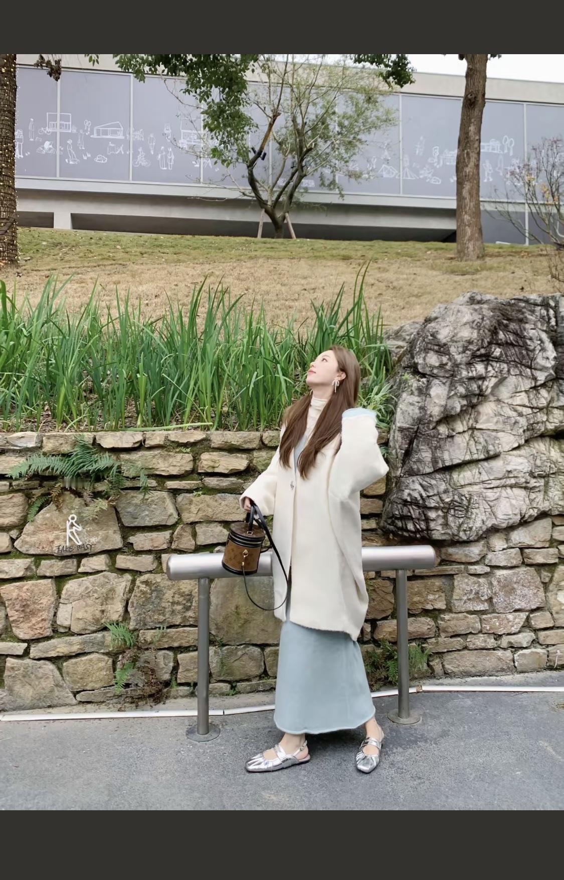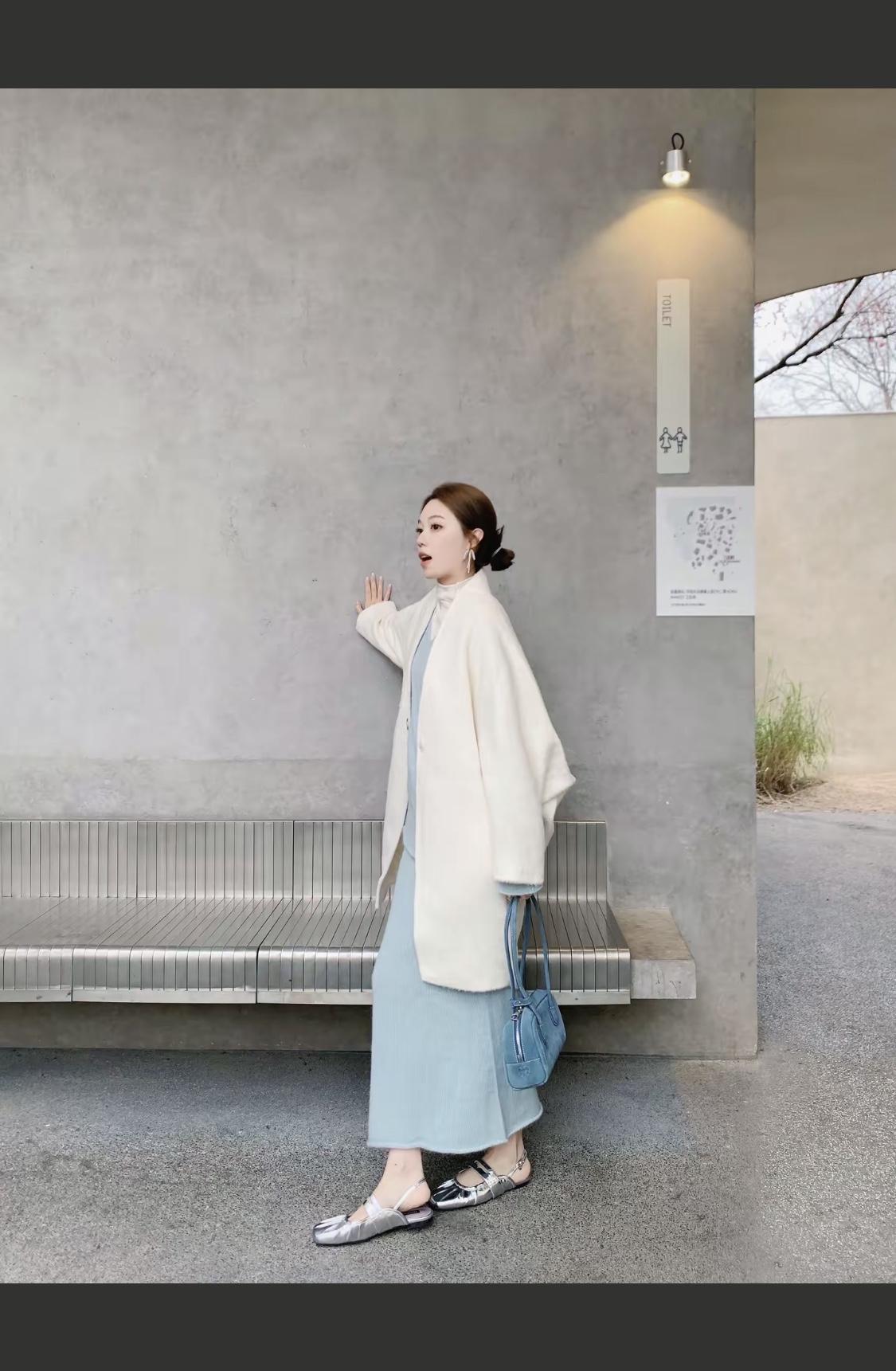 少女穿搭指南:白色大衣+浅蓝色长裙,优雅气质,尽显时尚风范。