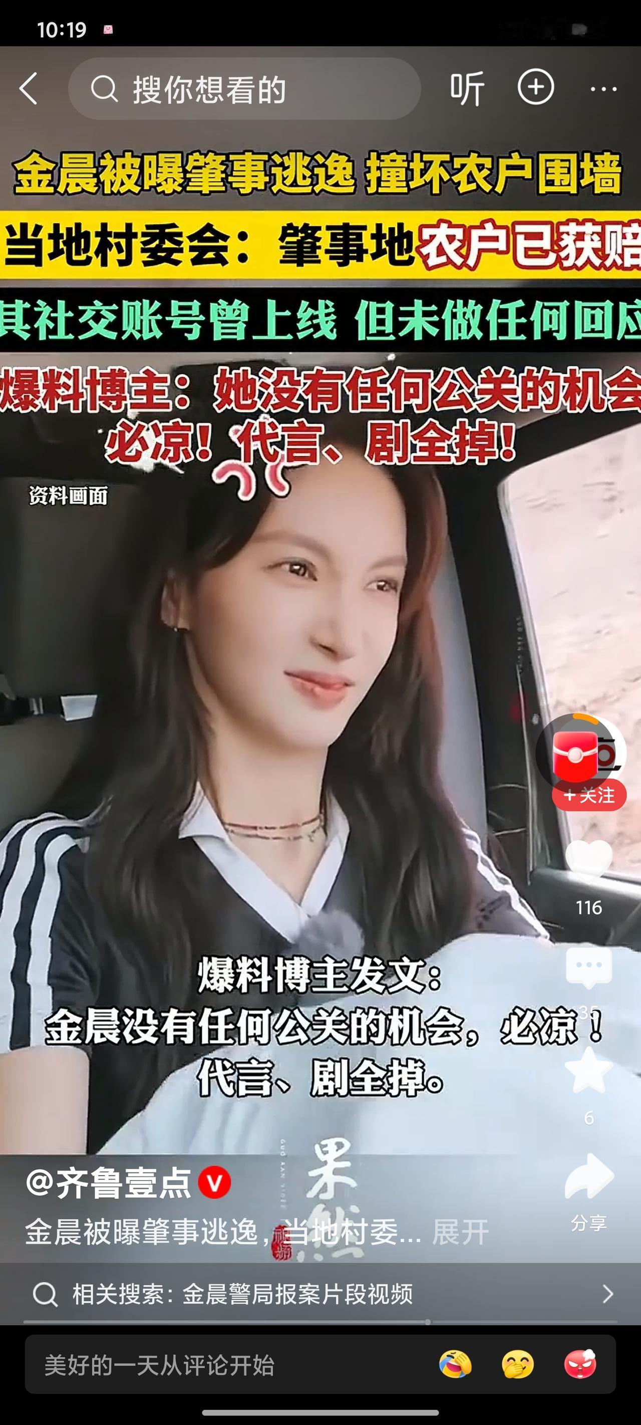 金晨事故顶包实锤!警方通报无骗保,助理谎报驾驶员引众怒 柯桥公安30日官宣金晨(金某)交通事故事实,2025年3月她驾车避让窜行犬只出单车事故,助理留现场谎报是驾驶员,事后未理赔,无骗保行为,如今顶包已成既定事实! 这事网友直接吵翻了: ❶ 避狗是意外能理解,为啥非要顶包?明星就怕这点事影响事业? ❷ 助理背锅实锤,到底是自作主张还是被指使?这得查清楚! ❸ 公众人物更该守规矩,出了事第一时间担责才是正理! 我觉得,事故本身是意外没啥好说的,但顶包这个操作真的败好感。不管助理是出于什么原因谎报,金晨作为当事人,后续没及时纠正,让这事压了10个月才曝光,这本身就说不过去。 公众人物的底线从来不是“没犯大错”,而是小事上也守规则,出了问题不逃避。现在就等警方依法处理,交通违法面前,谁都没特权!