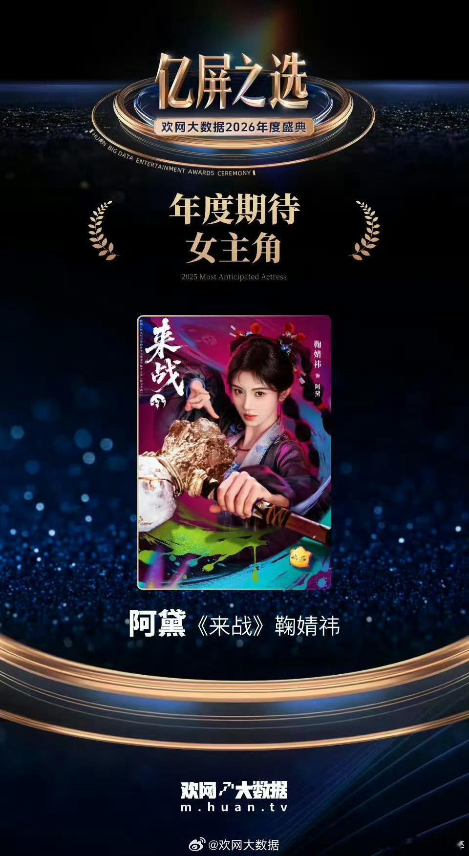 恭喜鞠婧祎来战阿黛获「年度期待女主角」!!真的好让人期待!!!