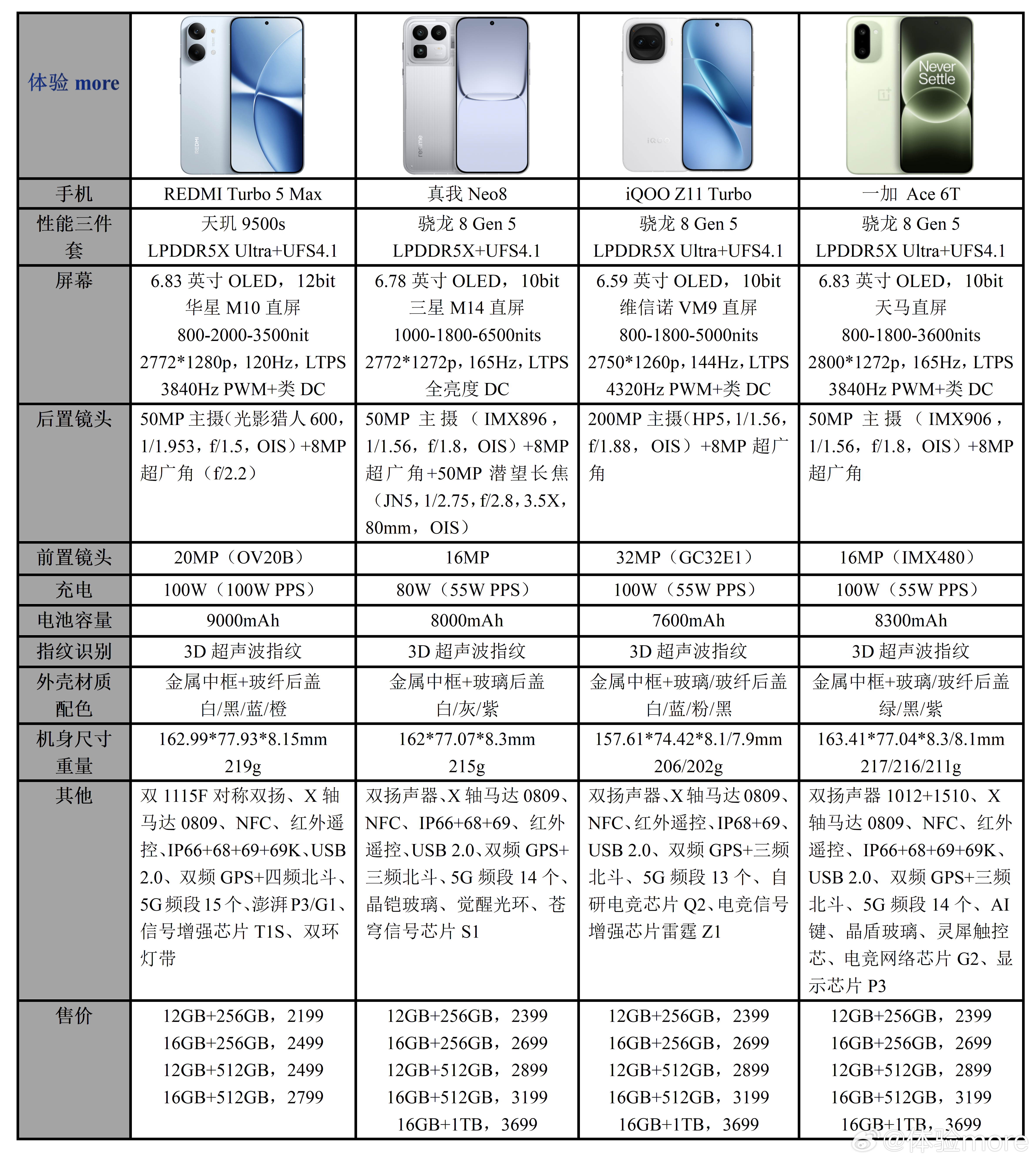 REDMI Turbo 5 Max,9000mAh最大电池+便宜200/400元。手机参数价格对比新机来了