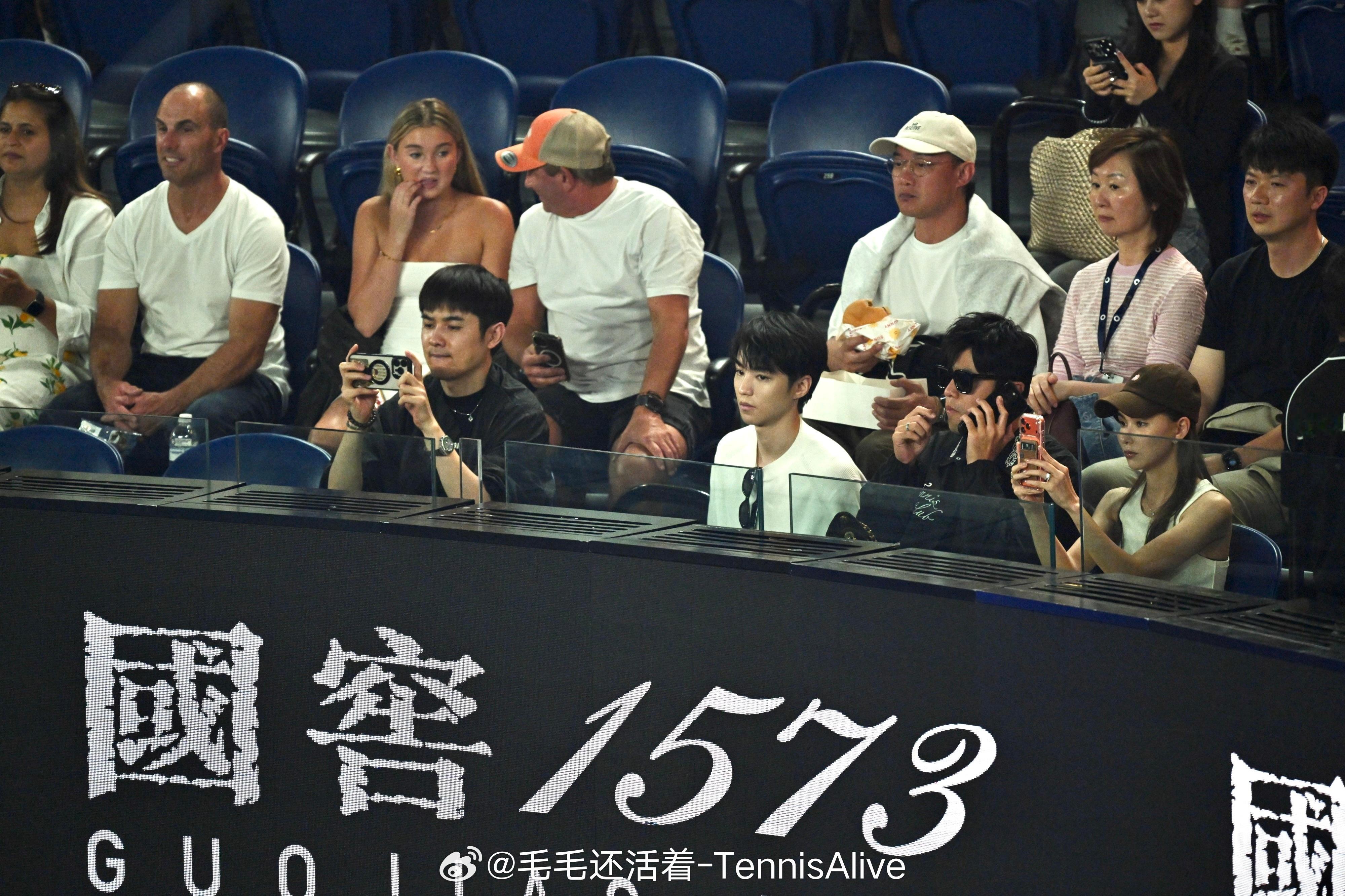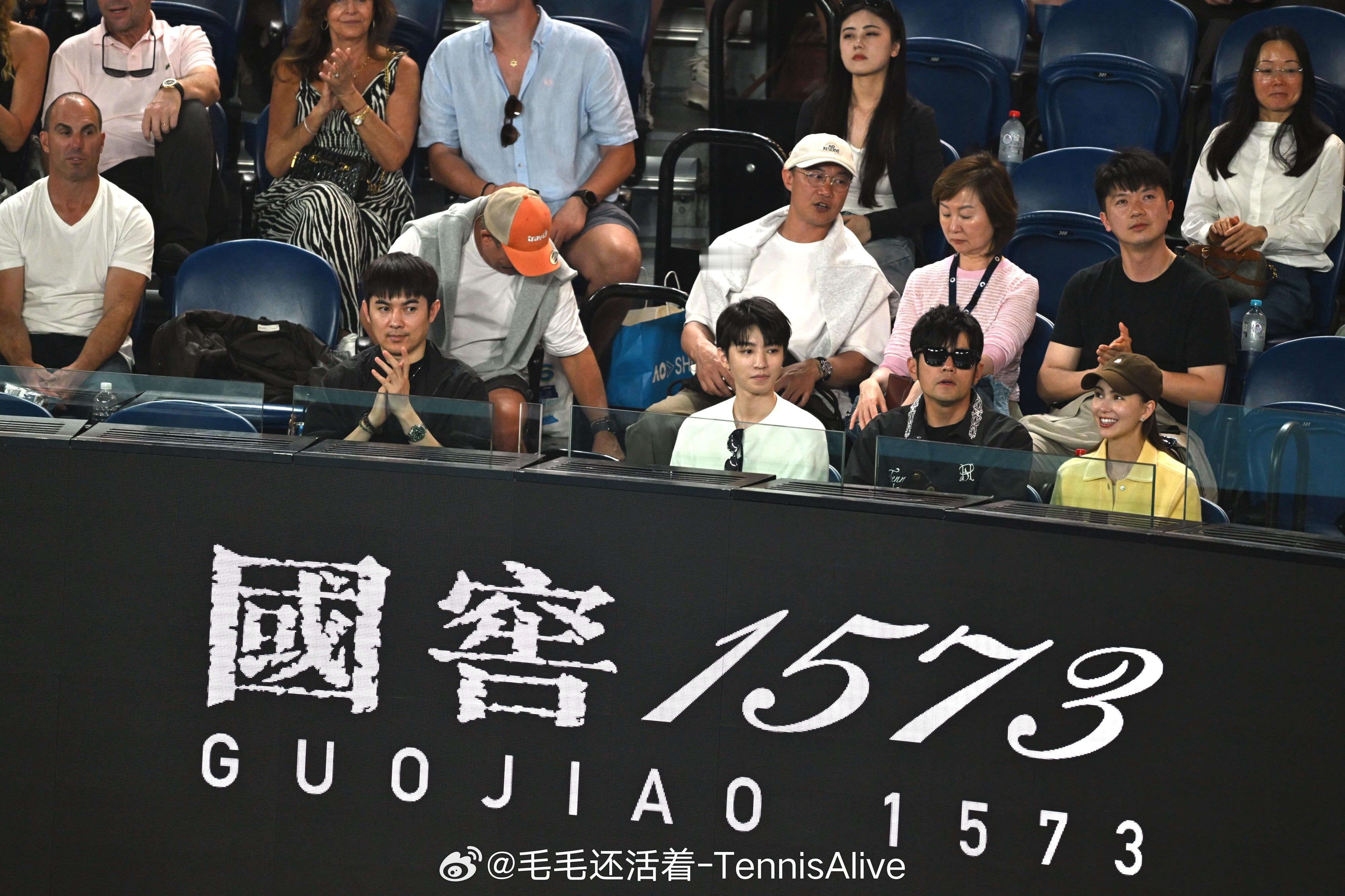 王俊凯观战澳网 王俊凯和周杰伦昆凌观看辛纳vs德约科维奇 的比赛。