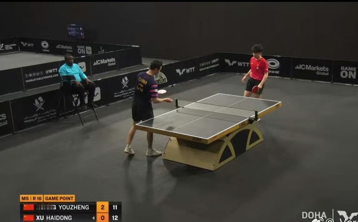 黄友政🇨🇳晋级男单八强! 这是黄友政在今天的第二场胜利[赞], 刚刚,黄友政🇨🇳3-1战胜队友徐海东🇨🇳,顺利晋级2026WTT支线赛多哈站男单八强,四局比分为:11-8,11-6,11-13,11-6。 今天黄友政在男双、男单项目上都晋级了,晚上九点之后还会有男双半决赛和男单1/4决赛,又是一天四赛了[赞]。 恭喜黄友政,单打、双打继续加油[奋斗]!