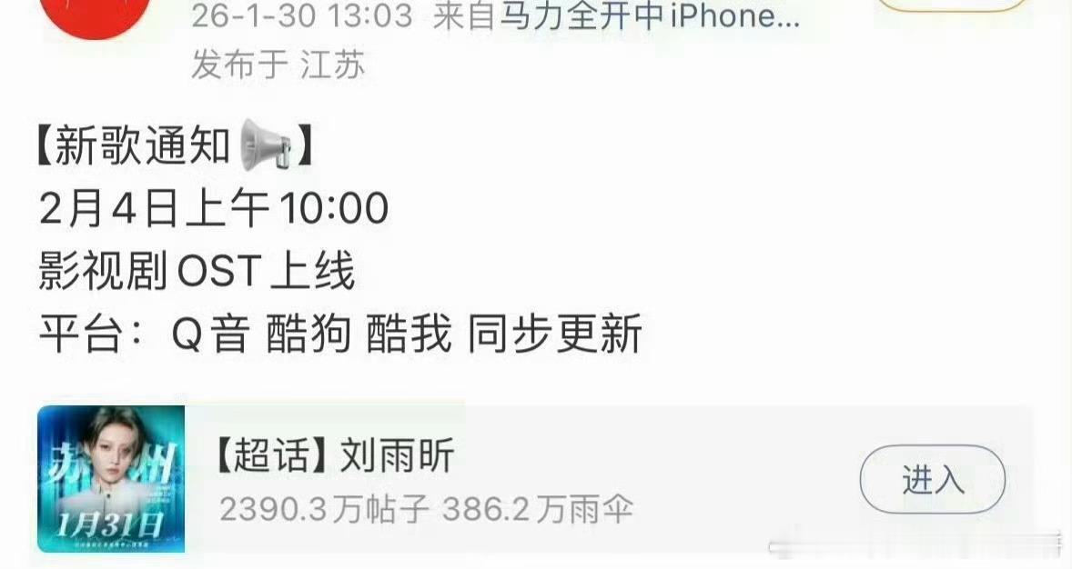 刘雨昕新的OST预告,又可以听新歌了先期待刘雨昕仙那度苏州演唱会