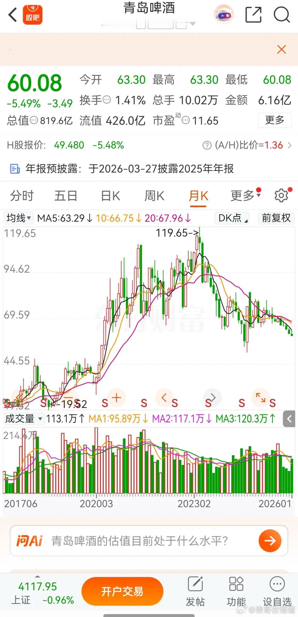 谁能想到,多少人的心中白马,以为只会涨不会跌的青岛啤酒,如今也落到这个下场,