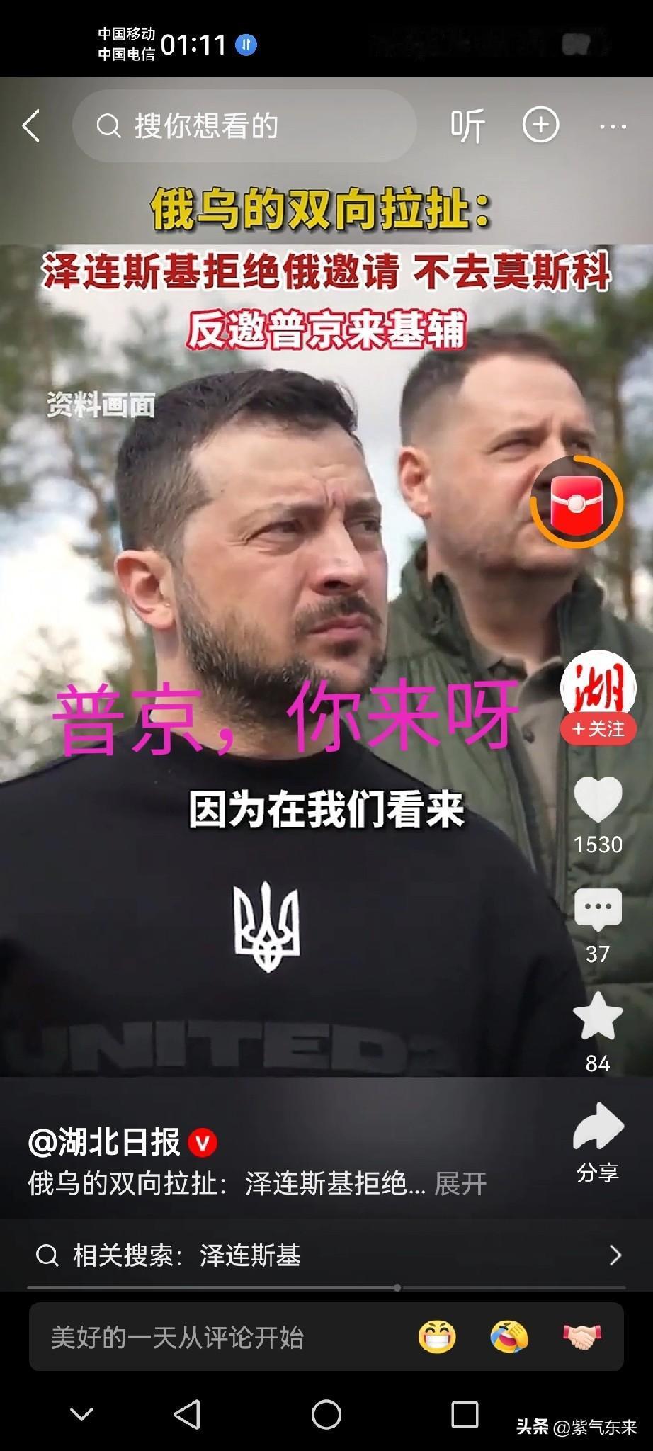 这俩位总统挺有意思的 俄罗斯总统盛情邀请泽连斯基来莫斯科 这可把泽连斯基整不会了! 乌克兰总统泽连斯基也不好拒绝,毕竟对手诚意满满,不去显得自己没胆,去吧恐怕回不来了! 泽连斯基铁定不会去,为了挽回面子。 泽连斯基反将一军 泽连斯基反过来邀请普京来乌克兰首都基辅! 双方反复拉扯,互相邀请,这把外界整不会了! 俩个总统唱起了中国东北的二人转了! 泽连斯基