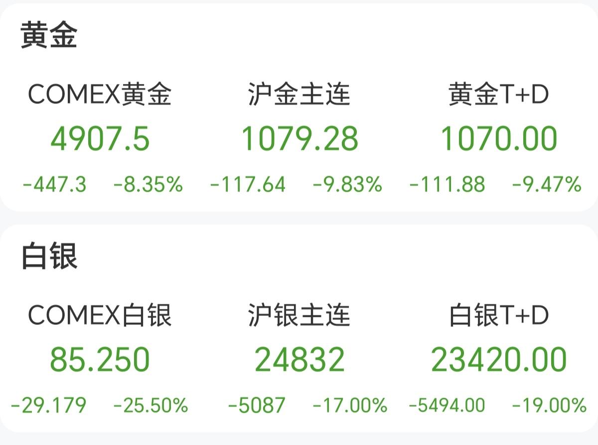 太恐怖了!黄金白银期货暴跌! COMEX黄金期货跌-8.35%,COMEX白银期货跌-25.5%。 周五抄底贵金属的兄弟们难熬了!股市太难了!