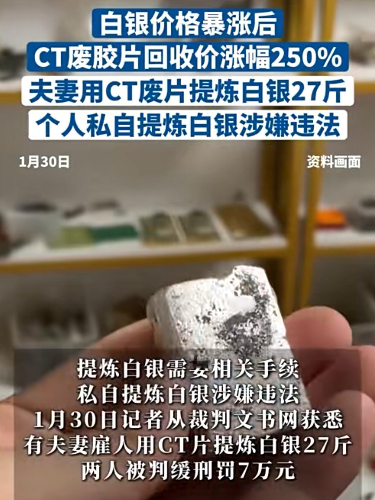 裁判文书网昨天发了个案子,真是够离谱的。有对夫妻,啥资质也没有,居然想出来个歪点子:去医院收人家用过的CT废胶片,拿回家自己瞎折腾,从里头提炼白银。最后真给他们搞出来27斤多,卖了6万块钱。 更吓人的是,他们经手处理的这种危险废物,加起来有一百多吨。这些东西随便乱搞,对环境有多大危害根本没法算。这事儿当然没藏住,很快就被抓了。最后法院定了污染环境罪,给俩人判了缓刑,罚了款,赚的那6万也追缴了。 要我说,这事儿就不能用“不懂法”来搪塞。一百多吨危险废物啊,这是闹着玩的吗?为了那点钱,把大家的环境都给坑了,真没法原谅。现在环保多重要,这种搞破坏的行为,罚他们是应该的。希望这事儿也能给其他人提个醒,歪门邪道赚的钱,早晚得吐出来,还得把自己搭进去。