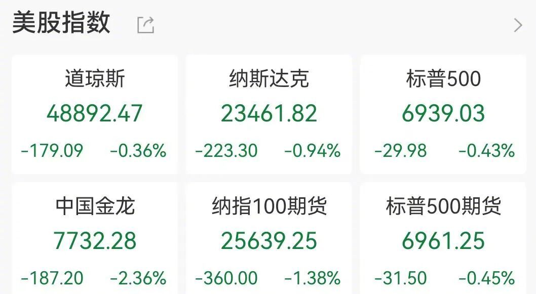 #金价银价大幅下跌#【深夜黄金大跳水,白银大跌26%,美股全线下跌】#黄金白银史诗级抛售#1月31日,美股三大指数收盘集体下跌,道指跌0.36%,1月累涨1.73%;纳指跌0.94%,1月累涨0.95%;美联储主席人选尘埃落定日,标普500指数收跌29.98点,跌幅0.43%。