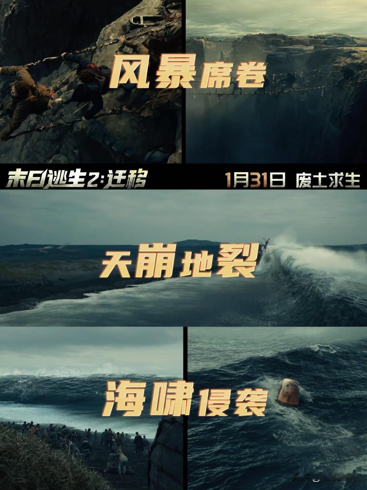 家人们!2026开年第一灾难大片来了! 《末日逃生2:迁移》定档1月31日, 光看预告我就疯狂心动! 彗星砸向地球的瞬间,直接头皮发麻! 超级风暴撕毁高楼, 陨石像雨点般砸落, 千米海啸吞掉大陆。 每一帧都是顶级CG特效, 现实和幻想都分不清了,视觉冲击力绝了! “陷落哥”杰拉德·巴特勒再演灾难片, 直接拉满期待值! 悬崖吊桥断裂的失重感, 陨石擦过头皮的灼热感, 海啸扑面而来的窒息感。 全程沉浸式体验,手心冒汗根本停不下来! 这种为大银幕而生的大片,真的不能在家看! 电影院的音效和画面, 才能撑起这场“核爆级”视听盛宴。 末日题材爱好者狂喜, 这绝对是2026开年必看清单Top1! 世界末日里的废土求生,每一步都是生死挑战。 1月31日,必须约上朋友冲电影院! 准备好和主角一起逃离末日,迎接新的开始~