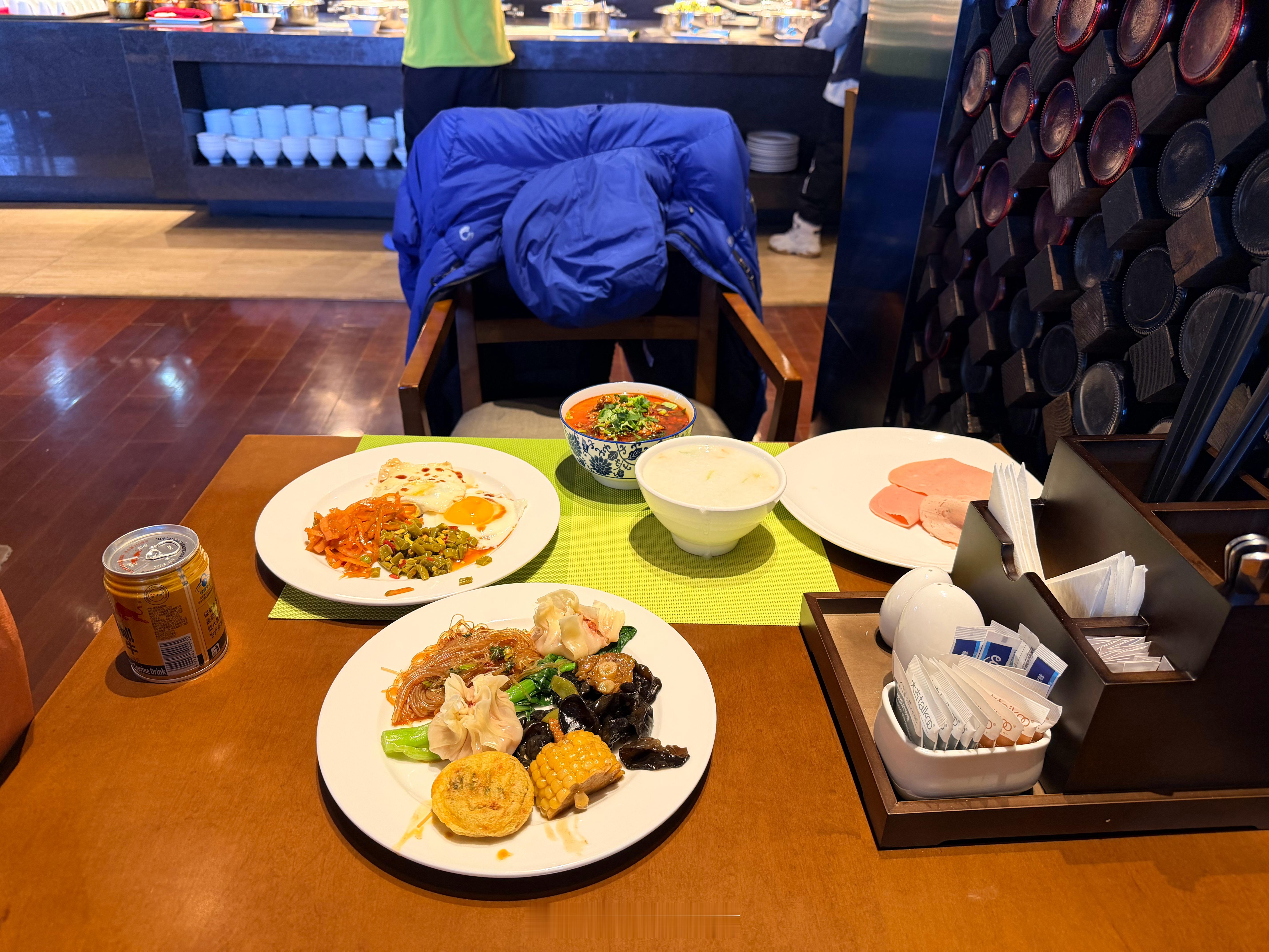 进早餐厅,给我指坐哪儿其实就冲桌上的饭量,并不难找