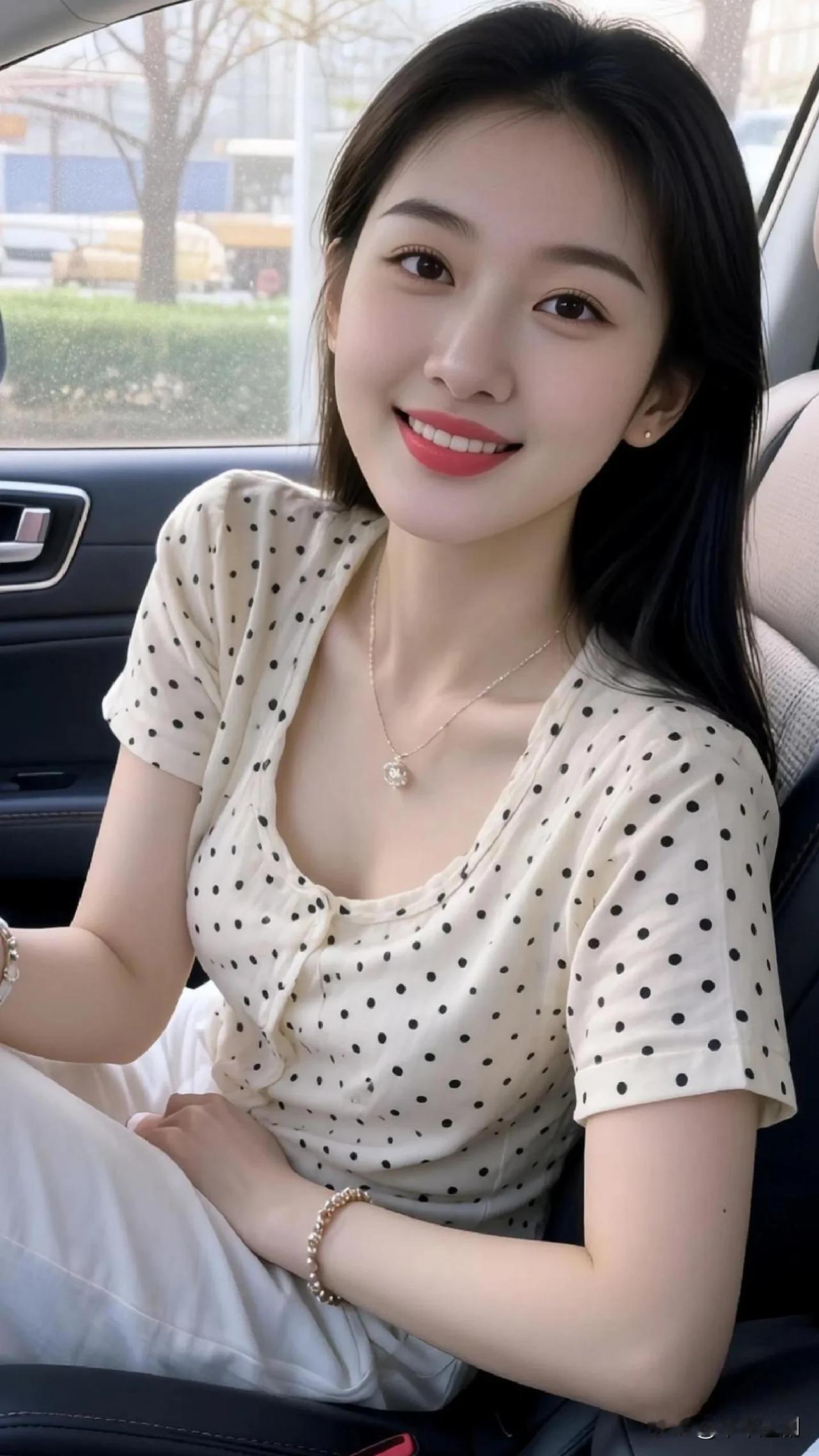 🚗春日午后,波点上衣配松弛坐姿,把好心情藏在车窗里,一个甜笑就撞进了温柔的风