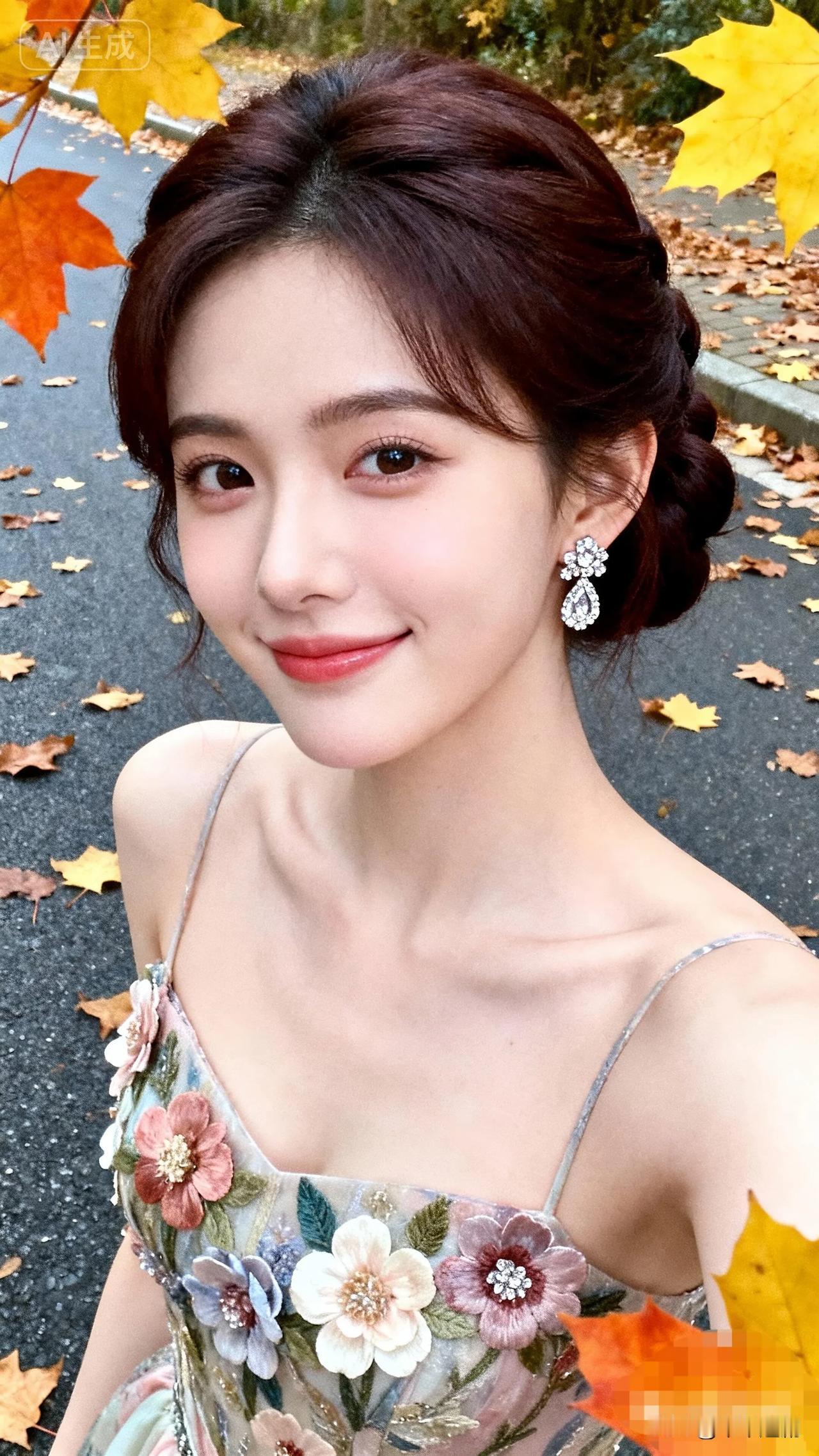 🍁 繁花裙装撞进秋日街头,枫叶为背景,发间藏着温柔,笑意里尽是浪漫的秋意。 落叶氛围感照 秋日古韵 逆光彩叶长裙