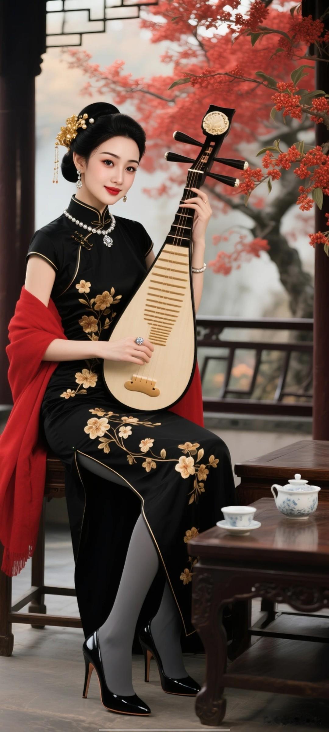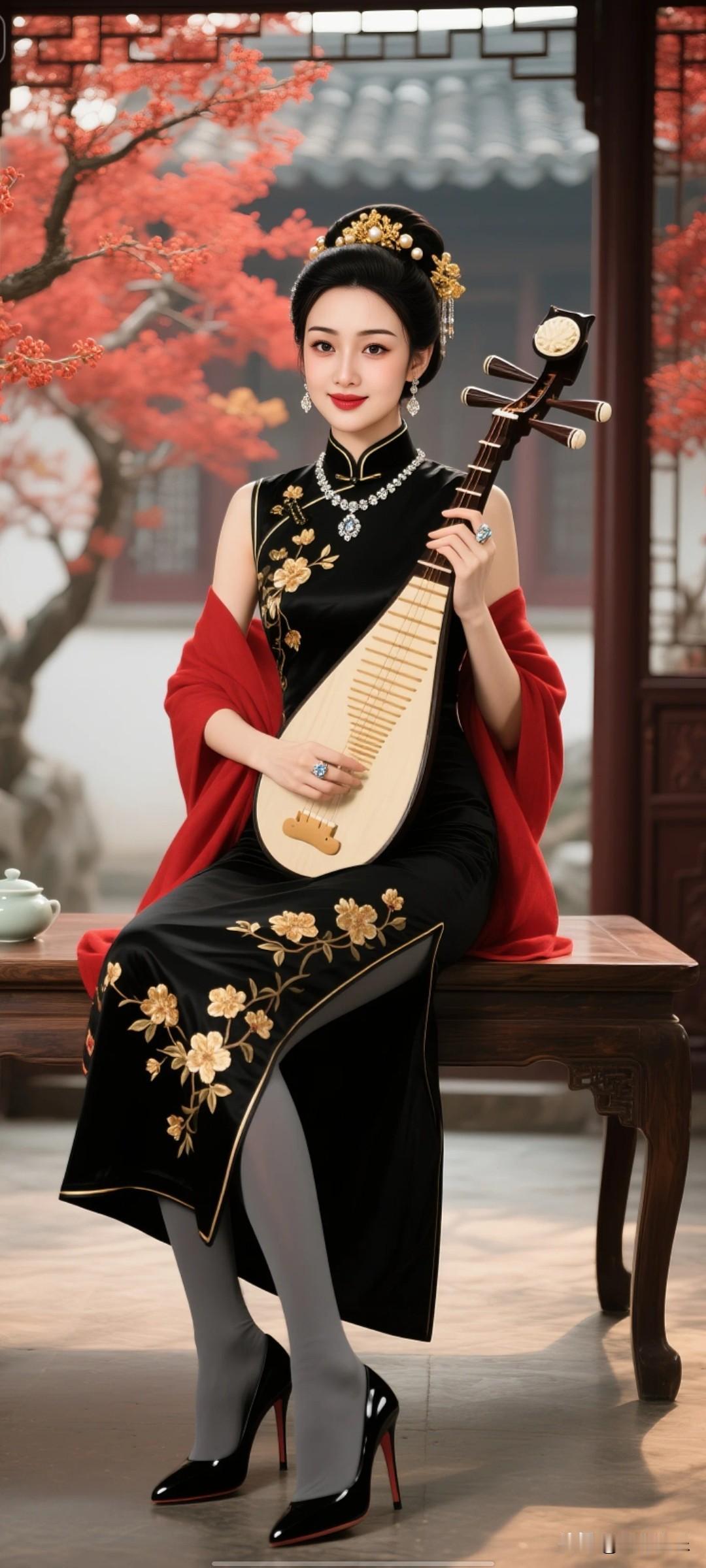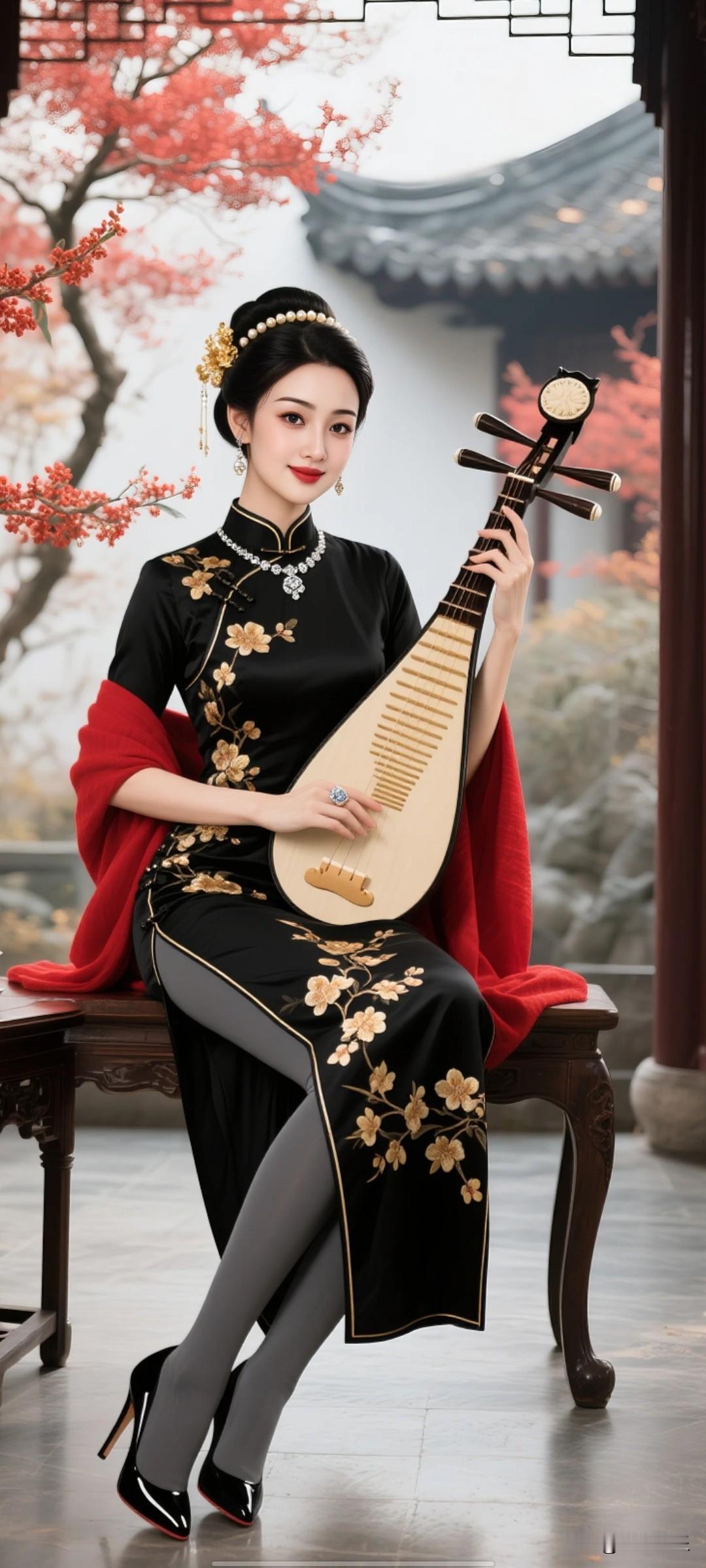 犹抱琵琶半遮面。转轴拨弦三两声 古风黑色旗袍,无敌的气质。