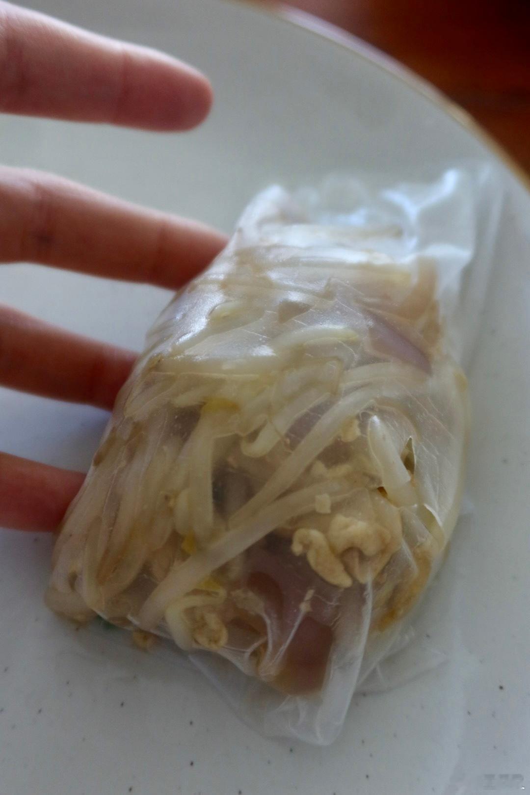 早午餐:越式春饼?早上炒了春饼的菜,想着不能就这么干吃吧,没有春饼但有越南米纸啊!终于掌握了米纸的技巧:沾水3秒,把菜放上去包上,包好米纸就软了,等软了再包就粘起来很难包了。现在做饭就图一个蛋白质碳水纤维都丰富,冰箱里pantry里有什么就组合一下