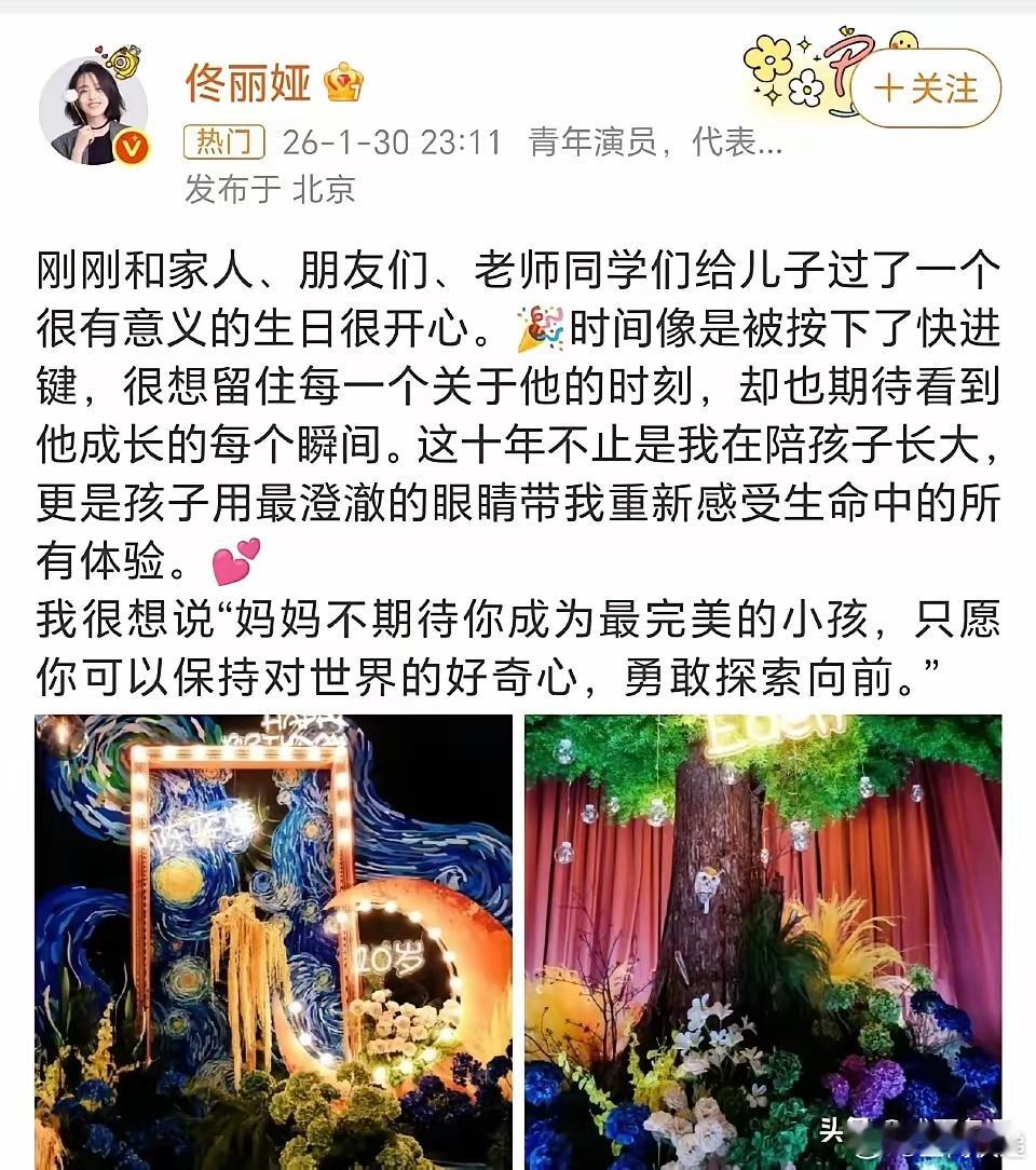 刚刚丫丫晒出儿子朵朵的10岁生日宴现场,梵高星空主题布置梦幻又治愈。