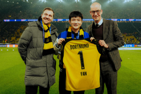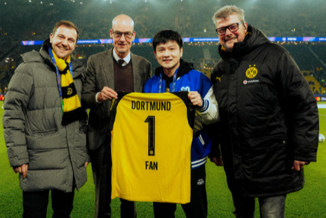 樊振东的跨界影响力 原则上蓝色球衣是不能进入多特蒙德更衣室的,但樊振东进去了,并且接受了采访 樊振东与波尔受邀去多特蒙德主场观赛,多特蒙德CEO亲自赠送樊振东定制专属“1号 FAN”球衣,以最高礼遇接见! 网友说最能在欧洲足坛说得上的话的中国人是乒乓球运动员樊振东,樊振东的跨界影响力真的太牛了