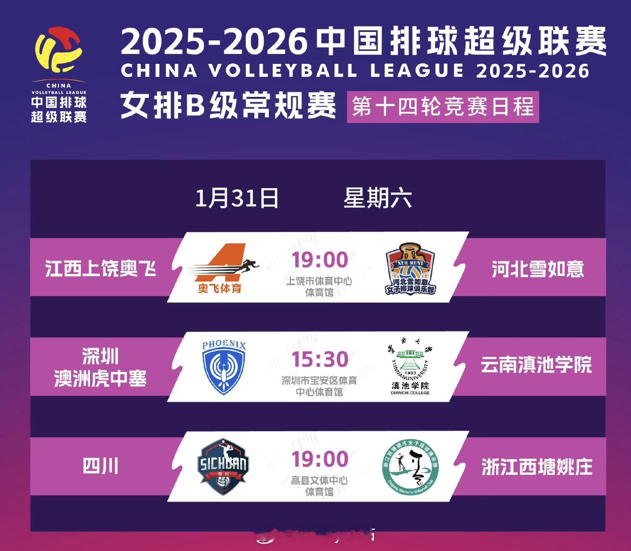 2025-2026赛季中国女子排球超级联赛今日赛程安排