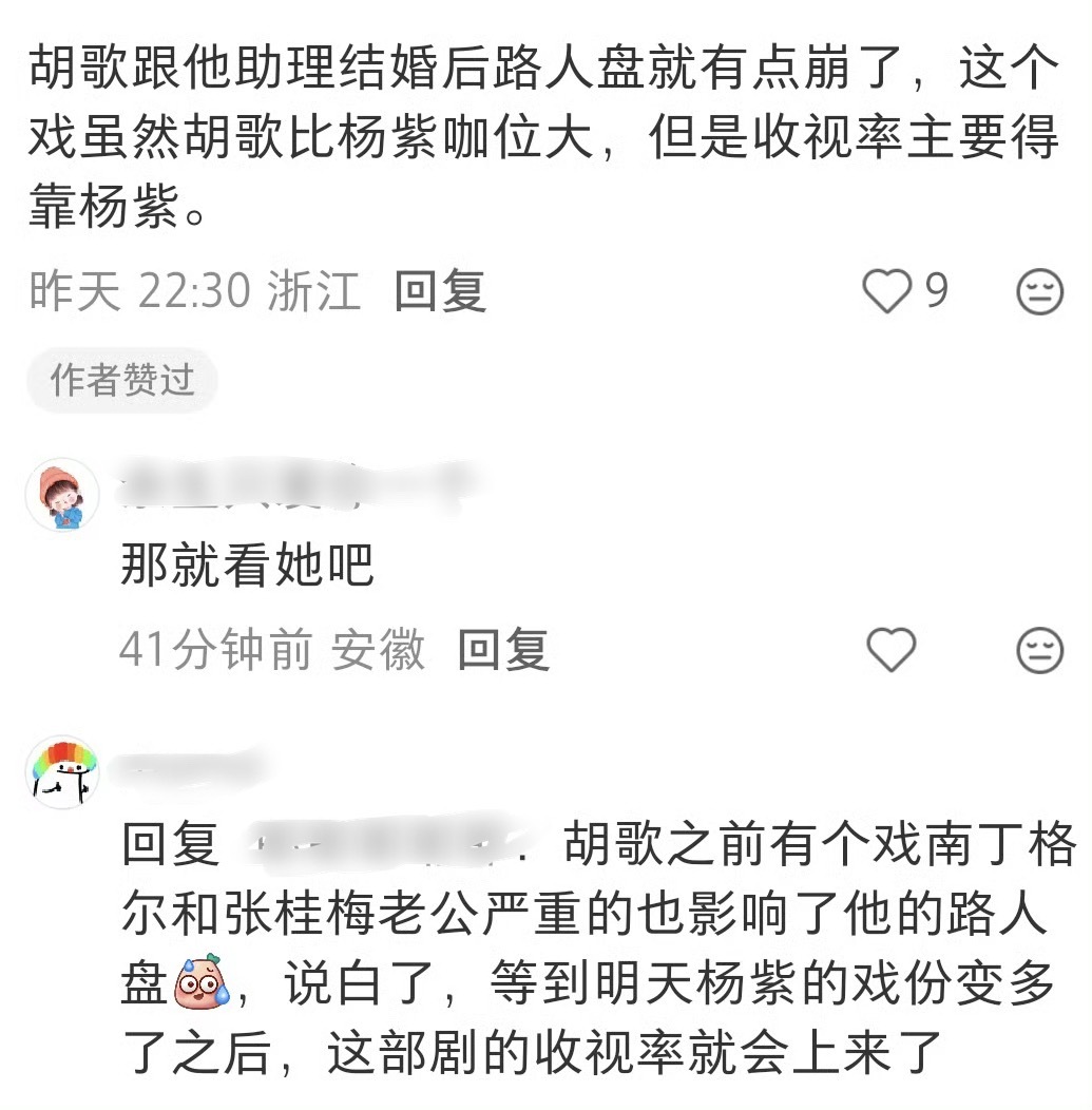官宣前:谁来了也不管用,胡歌也得平,大厂冲奖剧我家大女主单扛;开播后,胡歌结婚后路人盘有点崩,影响路人盘,一直不抗收视