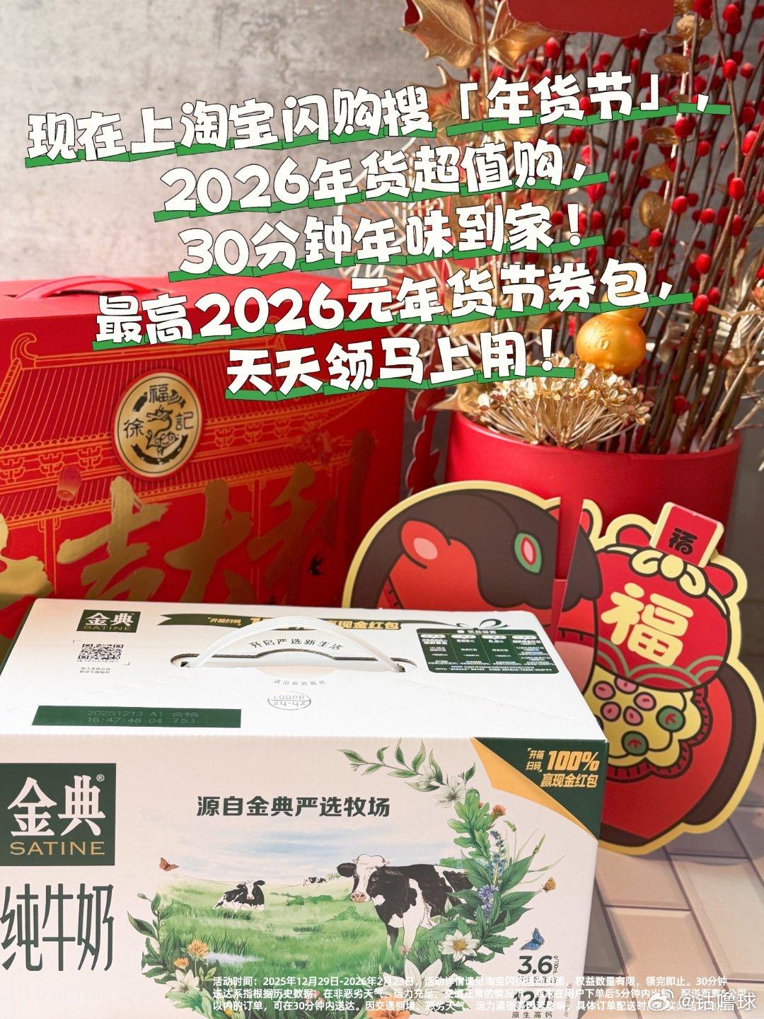 终于轮到大学生置办年货了 虽然忘记买礼物…年货零储备…但没关系,上淘宝闪购搜「年货节」,2026年货超值购,30分钟年味就到家啦!红红火火过新年,办法总比问题多~给自己的机智打满分淘宝闪购拯救办年货紧急时刻淘宝闪购年货节