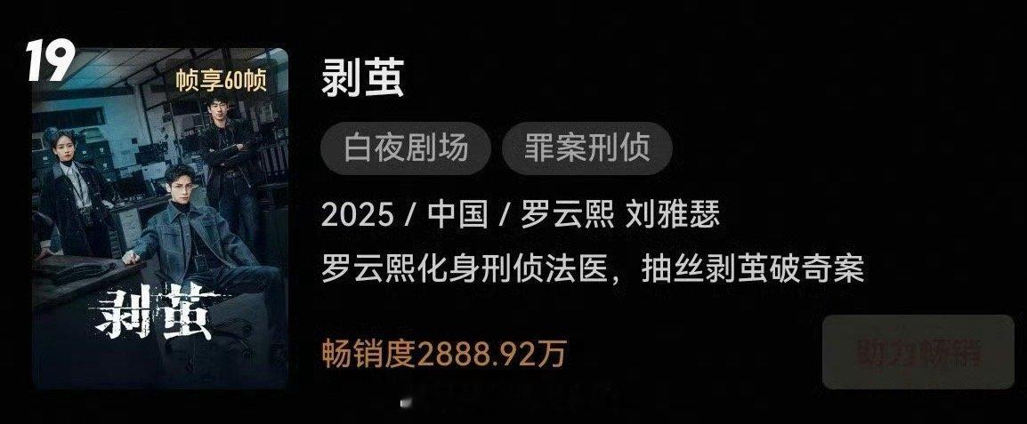 罗云熙《剥茧》好厉害,优酷年度畅销榜19啦!真的就是悬疑刑侦中的开年黑马,小众题材有罗云熙的剧粉盘来“破壁” 罗云熙